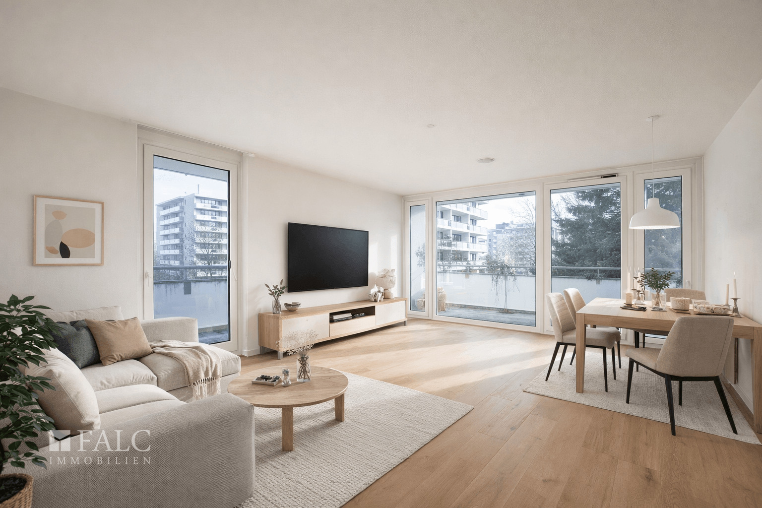 + bodentiefe Fenster sorgen für eine gute Belichtung aller Räume