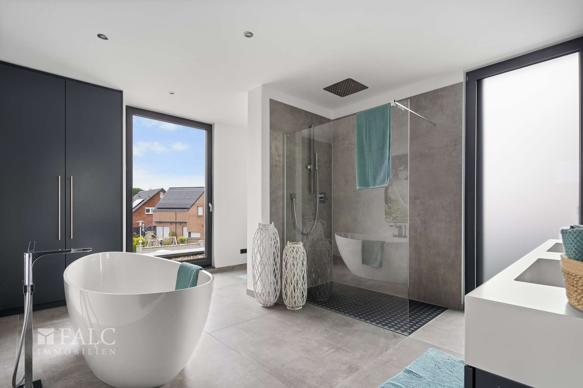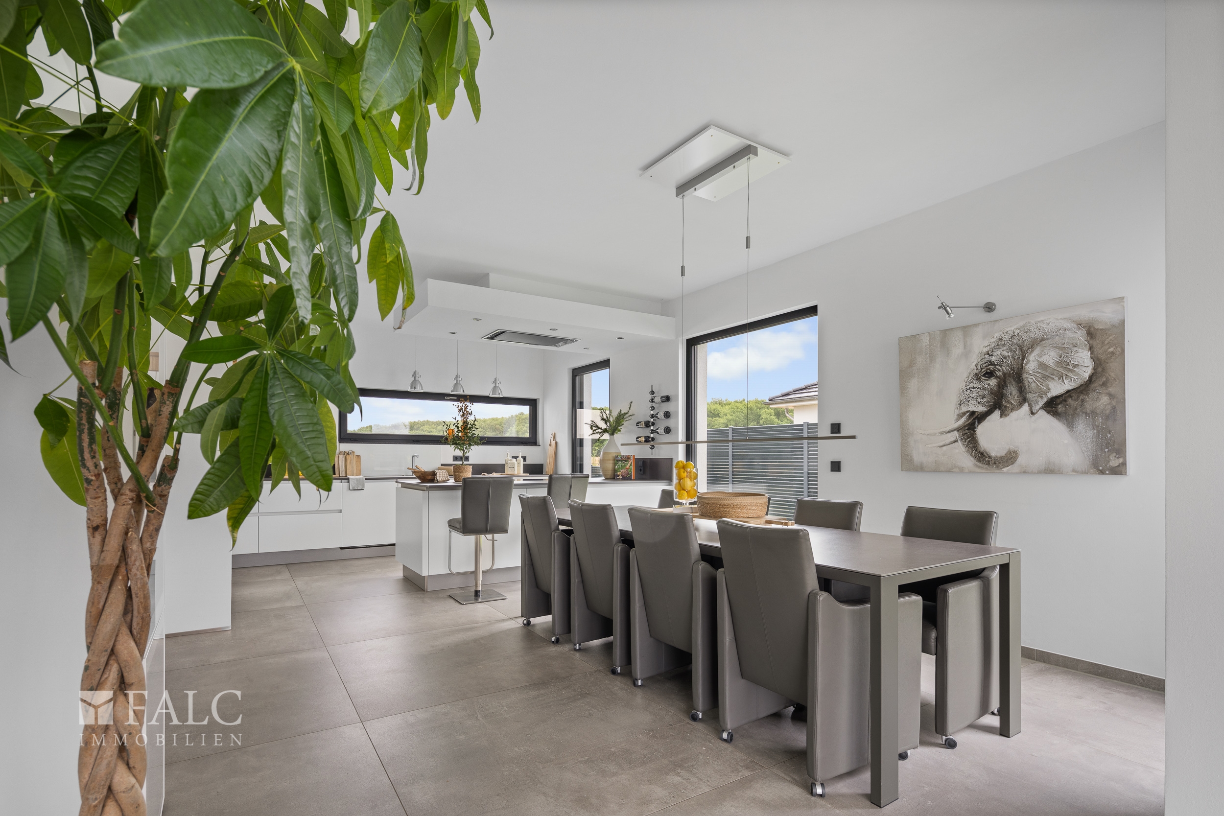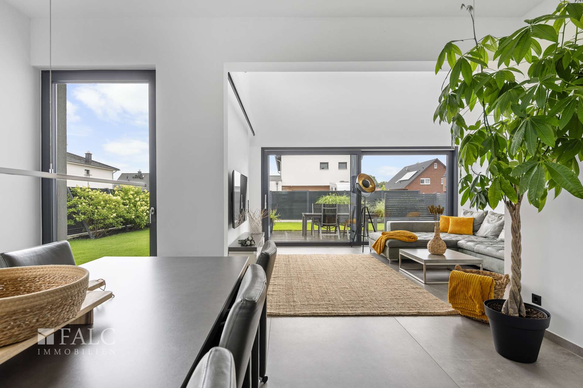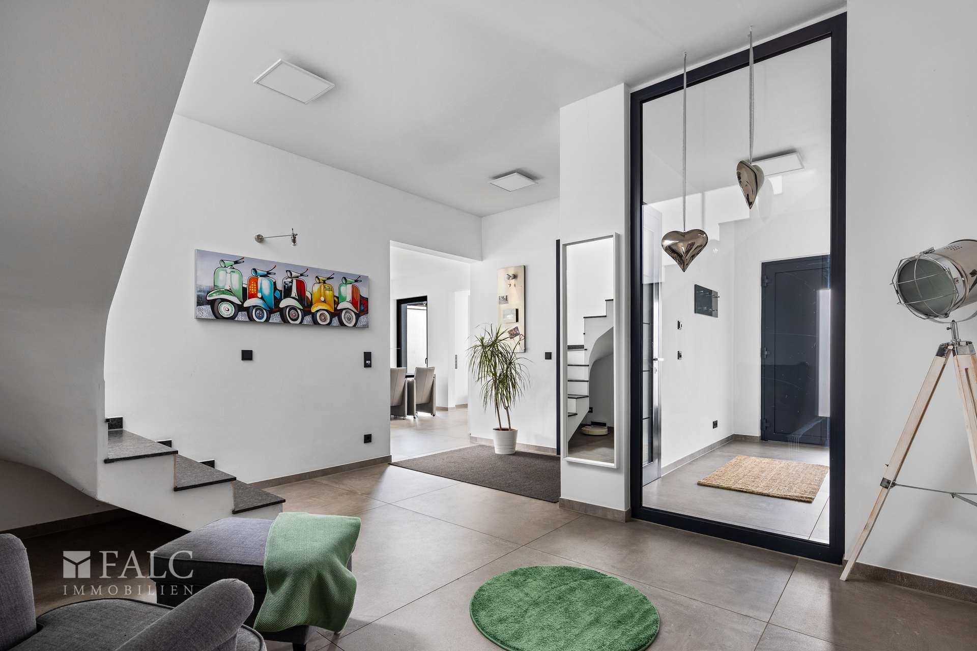 Viel Tageslicht, intelligente Details und mit besonderem Stilgespür versehene Einbauten - diese Immobilie vermittelt modern-zeitloses Wohnflair! Abgerundet wird dieses Wohnangebot durch eine in das Erdgeschoss integrierte Doppelgarage.