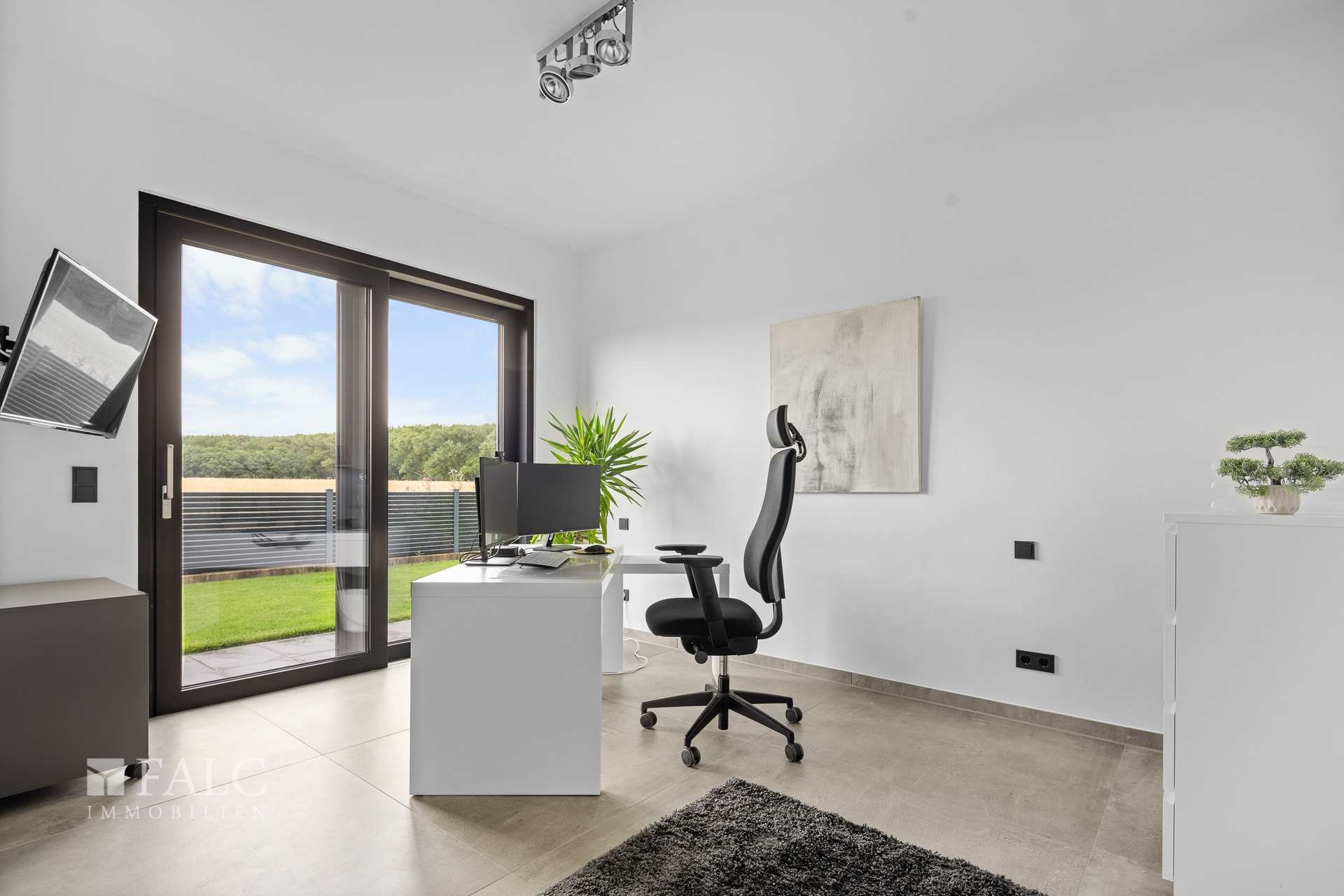 Erdgeschoss: + Wohn-/Essbereich + Küche + Diele + Arbeits-/Gästezimmer mit eigenem Ankleidebereich + Hauswirtschaftsraum + Abstellraum + Bad mit Dusche/WC