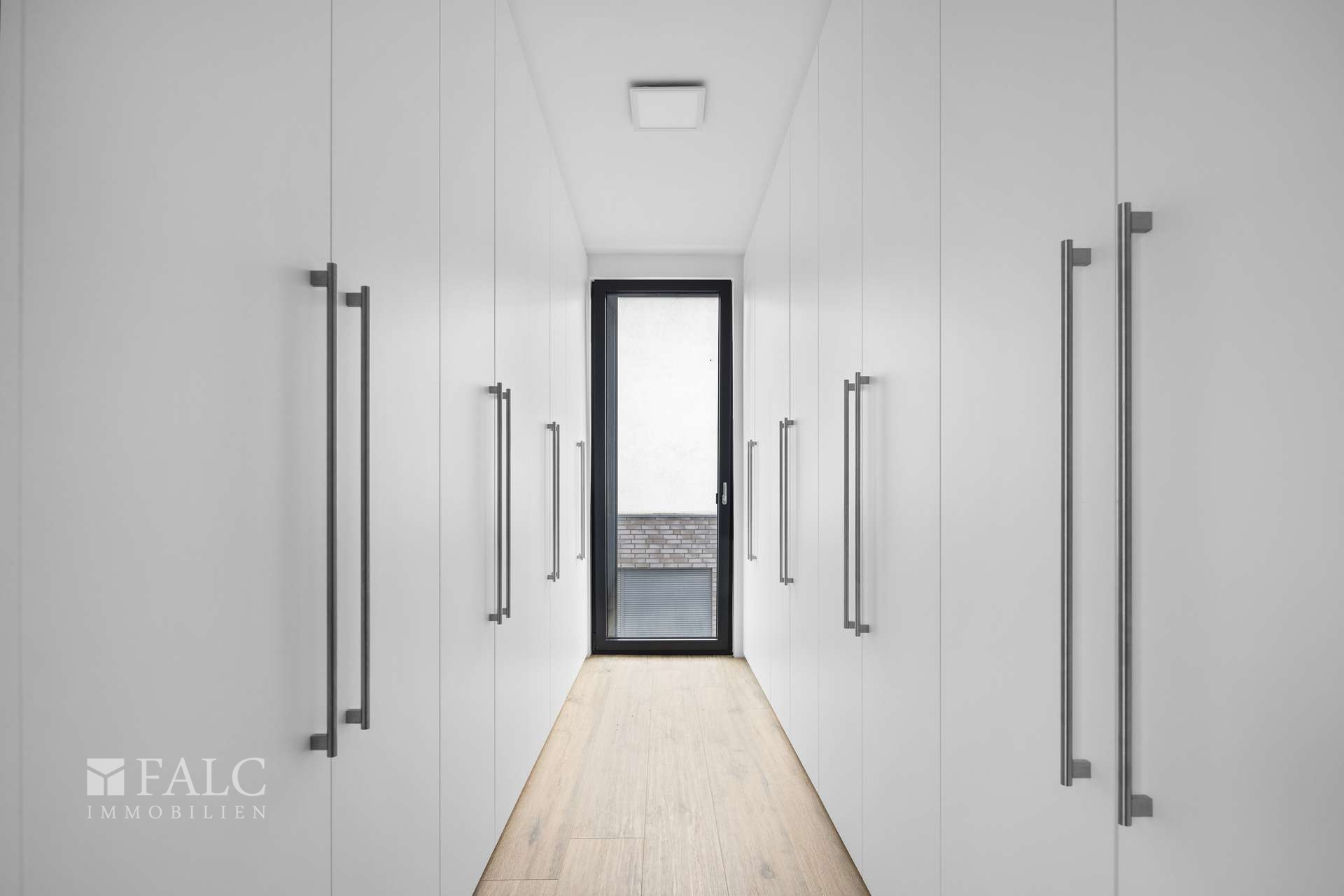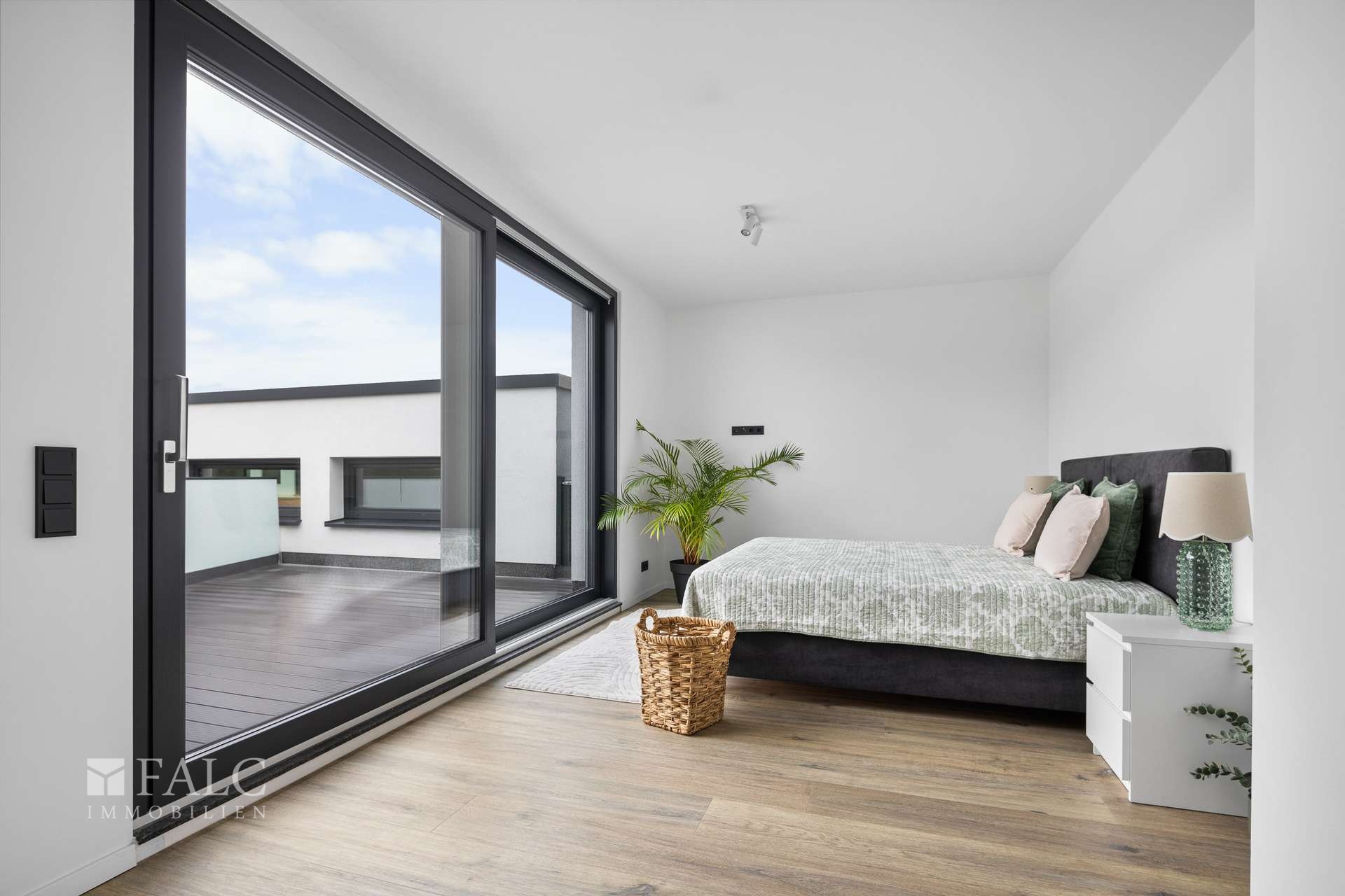 Die Räumlichkeiten erstrecken sich auf mehr als 230 m² Wohnfläche über zwei Etagen. Im Erdgeschoss befinden sich Wohnbereich, Küche und Essbereich - ebenso wie Gäste-/Arbeitszimmer mit eigenem Ankleidebereich, Duschbad, großzügiger Abstellraum und Hauswirtschaftsraum. Das Obergeschoss wartet mit weiteren extravaganten Räumen und Details: Ein weitläufiger Masterbereich, bestehend aus Schlafzimmer, Dachterrasse, Ankleidezimmer sowie Bad-en-Suite. Genießen Sie hier in der freistehenden Badewanne außergewöhnliche Erlebnisse! Ein Kinder-/Arbeitszimmer sowie ein zweites Bad-en-Suite mit einer Dusche und eine zweite Dachterrasse befinden sich ebenfalls auf dieser Wohnebene.