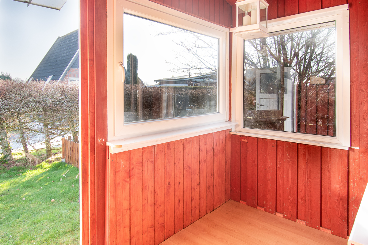 Ein angrenzender Geräteschuppen bietet ausreichend Stauraum für Gartenmöbel, Freizeitgeräte und mehr.