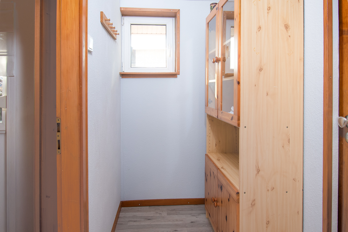Im hinteren Teil des Hauses finden Sie einen kleinen Flur, der ins (Kinder-)Schlafzimmer mit Hochbett sowie ins großzügige Elternschlafzimmer mit Doppelbett führt. Von dort gelangen Sie direkt ins modernisierte Bad mit Dusche (2021).