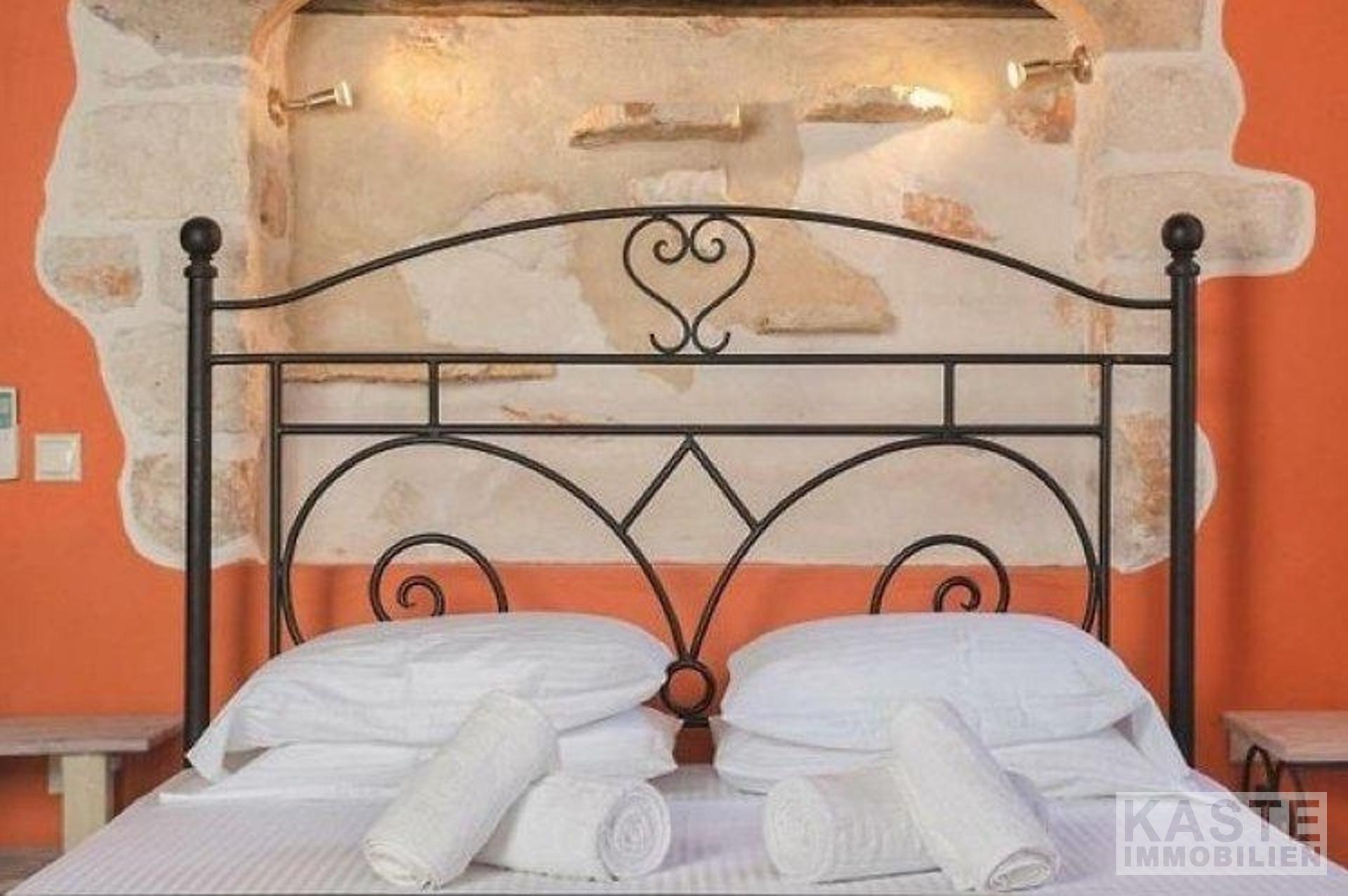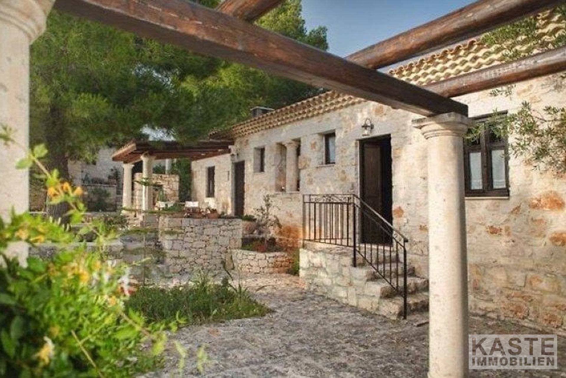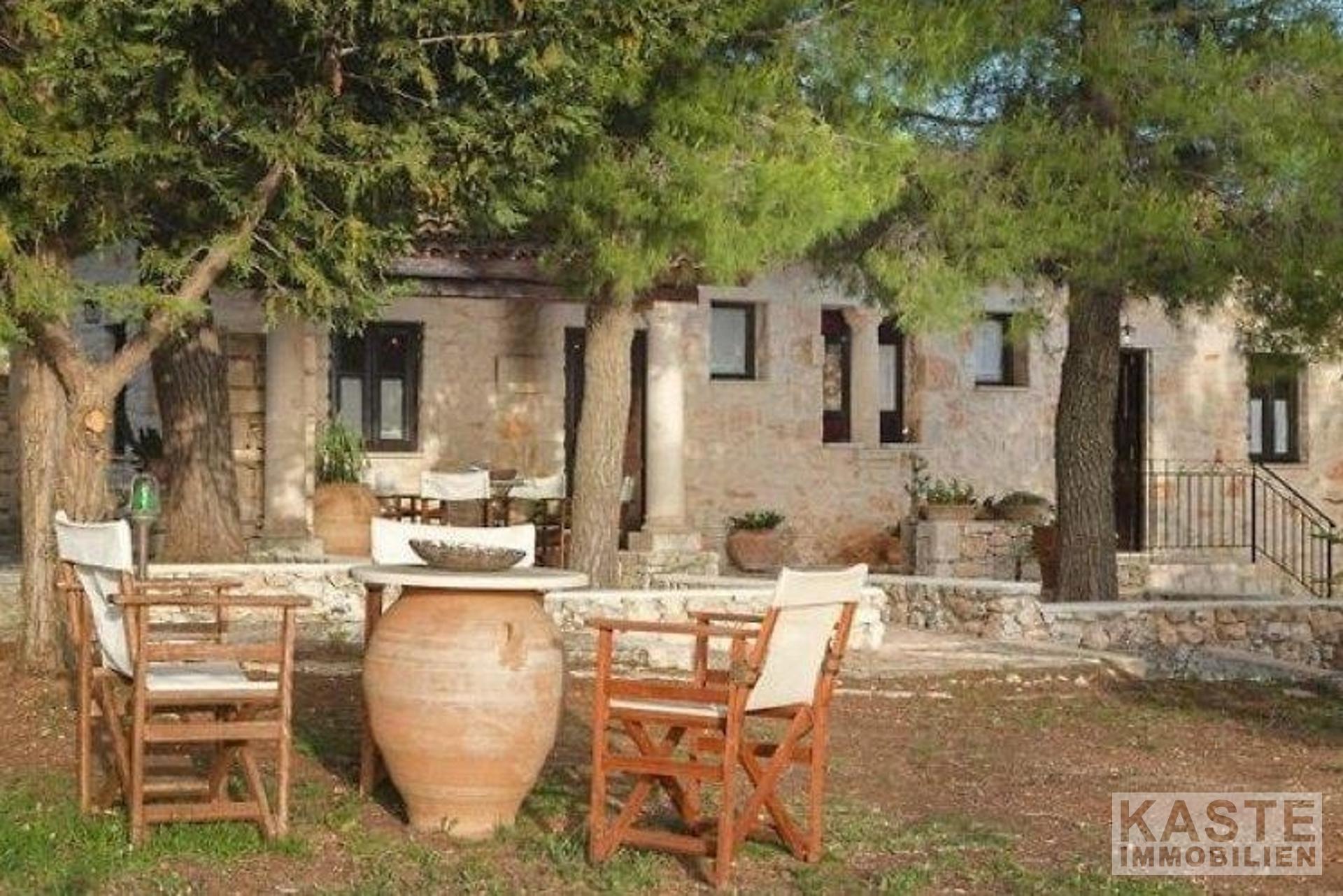 Diese Immobilie in den malerischen westlichen Hügeln von Zakynthos präsentiert ein charmantes Ensemble traditioneller Steinhäuser, ideal für Liebhaber authentischer mediterraner Architektur und Naturverbundenheit. Die Immobilie besteht aus einer zweistöckigen Hauptvilla mit 89 m² Wohnfläche und zwei unabhängig konzipierten Gästehäusern, die jeweils nach höchsten Standards auf zwei Ebenen gestaltet wurden. Die gesamte Wohnfläche beträgt 185 m² und umfasst fünf großzügige Zimmer, darunter vier Schlafzimmer und drei Badezimmer, die den Wohnkomfort abwechslungsreich und angenehm machen.