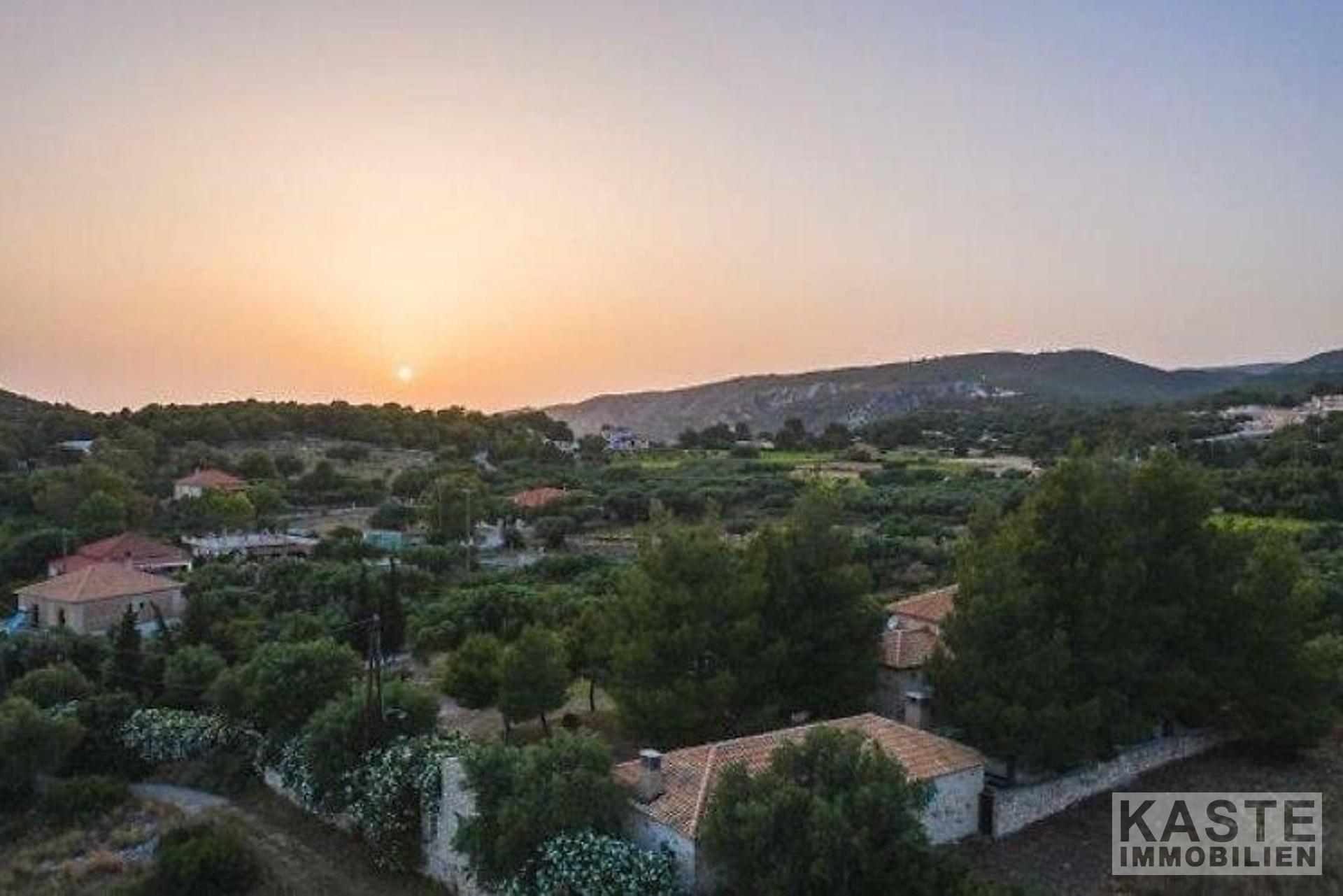 Die dazugehörigen zwei separaten Gästehäuser eignen sich ideal für Gäste oder eine mögliche zusätzliche Einkommensquelle durch Vermietung. Inmitten der natürlichen Schönheit rund um Kampi gelegen, besticht diese Immobilie durch ihre atemberaubende Aussicht auf endlose grüne Hügel und die friedvolle Zen-Atmosphäre des Ortes. Typisch für diese Region sind wunderschöne Sonnenuntergänge, die von der Terrasse aus genossen werden können – ein besonderes Highlight dieser Immobilie auf Zakynthos.