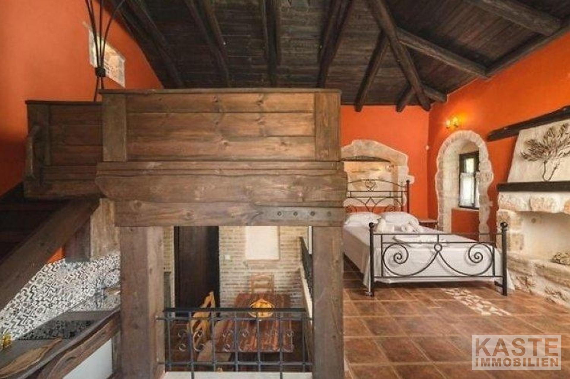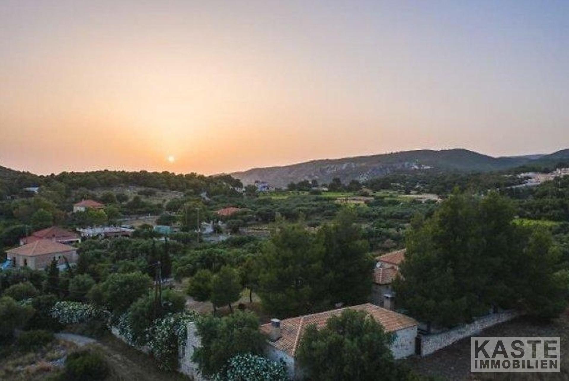 Diese Immobilie in den malerischen westlichen Hügeln von Zakynthos präsentiert ein charmantes Ensemble traditioneller Steinhäuser, ideal für Liebhaber authentischer mediterraner Architektur und Naturverbundenheit. Die Immobilie besteht aus einer zweistöckigen Hauptvilla mit 89 m² Wohnfläche und zwei unabhängig konzipierten Gästehäusern, die jeweils nach höchsten Standards auf zwei Ebenen gestaltet wurden. Die gesamte Wohnfläche beträgt 185 m² und umfasst fünf großzügige Zimmer, darunter vier Schlafzimmer und drei Badezimmer, die den Wohnkomfort abwechslungsreich und angenehm machen.