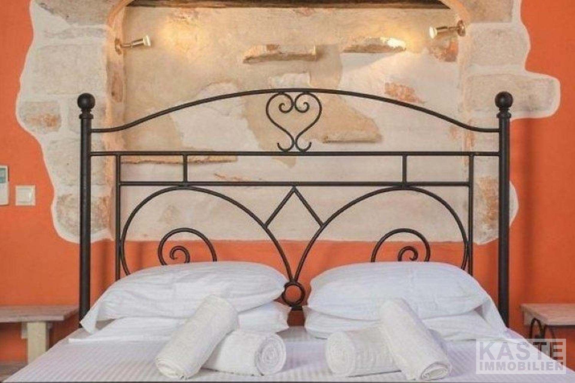 Die Hauptvilla bietet im Erdgeschoss einen offenen Wohn- und Küchenbereich, der ein einladendes Ambiente für Familie und Gäste schafft. Direkt angrenzend befindet sich ein angenehm gestaltetes Doppelzimmer sowie ein gepflegtes Familienbadezimmer. Im Dachgeschoss finden Sie ein weiteres Zweibett- beziehungsweise Doppelzimmer, welches zum Entspannen und Erholen einlädt.