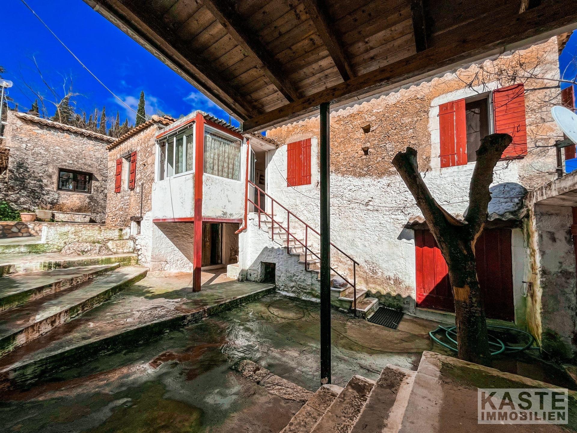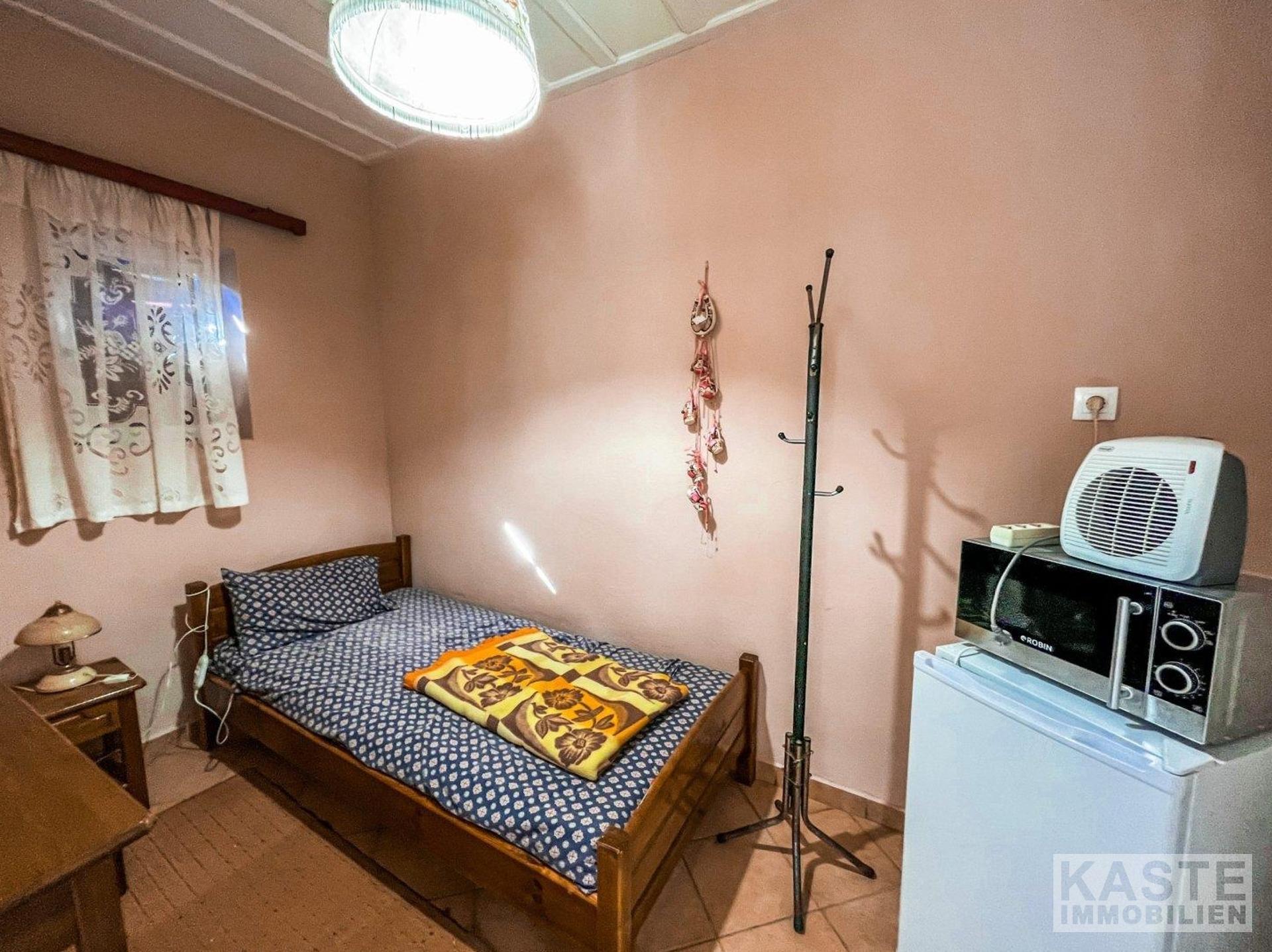 Zusätzlich steht ein weiteres Gebäude mit 35 Quadratmetern Fläche als Lagerraum zur Verfügung. Eine etwas entfernte Garage/ein geschlossener Parkplatz bietet Platz für 1-2 Autos. Diese bemerkenswerte räumliche Aufteilung schafft eine einzigartige Gelegenheit für diejenigen, die einen idyllischen griechischen Rückzugsort gestalten möchten. Die malerischen Orte Korakonisi und Porto Limnionas sind nur eine kurze Autofahrt entfernt, ebenso wie das Dorf Agios Leon, das mit einem Minimarkt, einem Café, einer Bäckerei, Restaurants und einer Schule aufwartet.