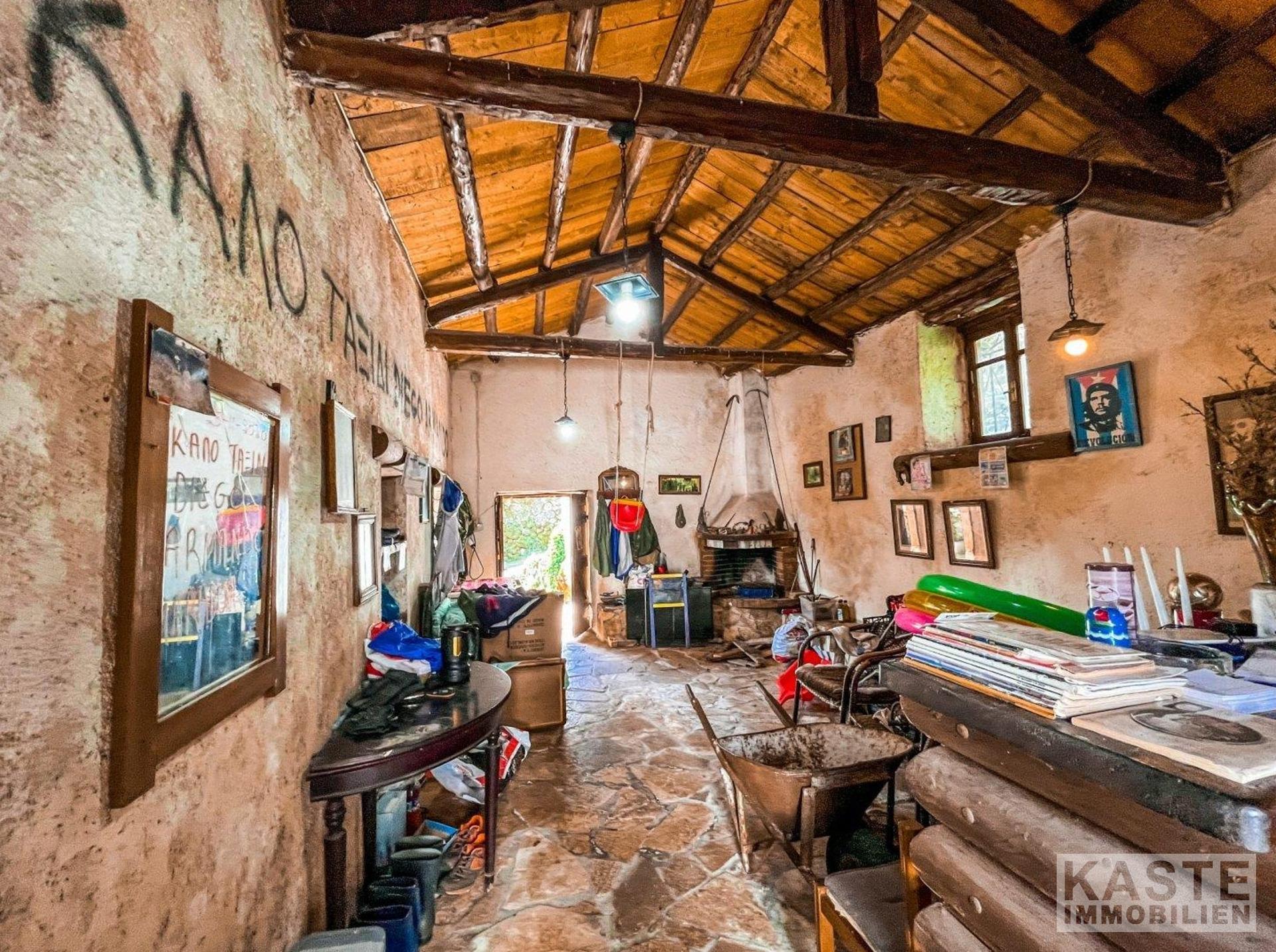 Das Grundstück erstreckt sich über 3400 Quadratmeter. Angrenzend an dieses Anwesen befindet sich ein zusätzliches Grundstück von 4000 Quadratmetern in erhöhter Lage mit atemberaubendem Blick auf das gesamte Dorf und die umliegende Bergkulisse. Die aktuellen Besitzer betreiben in den Sommermonaten ein Café, da das Dorf zu dieser Zeit viele Touristen anzieht. Sowohl das Grundstück als auch das Café können auf Wunsch zusätzlich erworben werden.