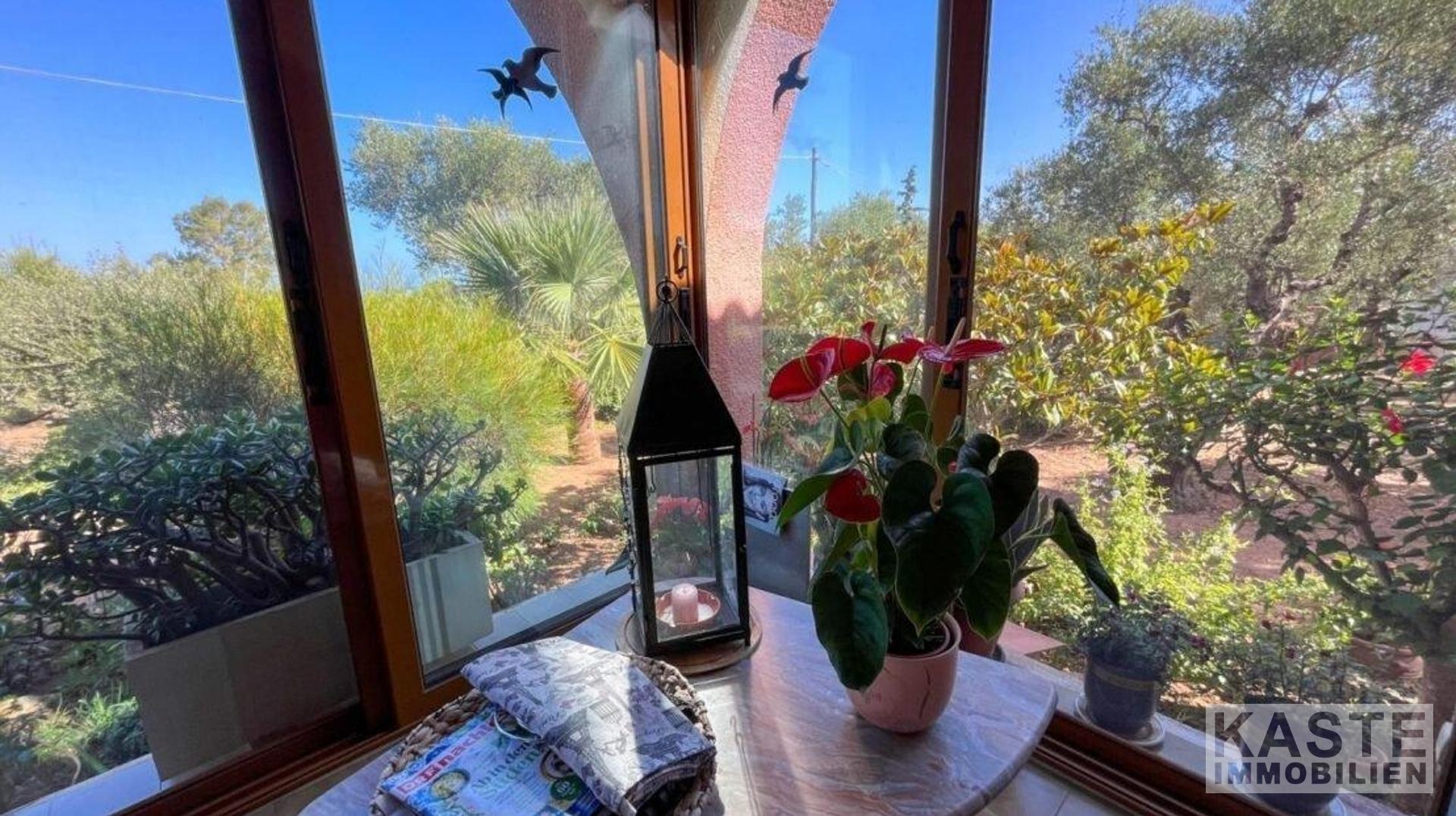 Außenbereich & Freizeit: - Gepflegter Garten mit Zitronen-, Oliven- und Obstbäumen - Große Rasenfläche und lokale Bepflanzung - Außendusche, Waschplatz - Separate Außenküche/Lagerraum - Doppelgarage mit elektrischem Tor - Umzäuntes Grundstück