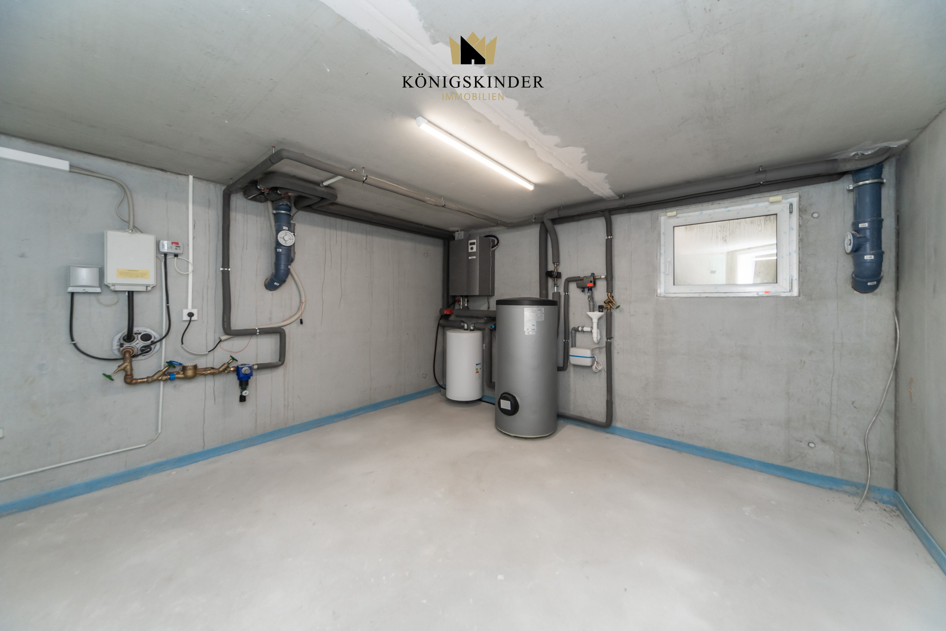 Exklusives Wohnen in vollendeter Harmonie mit der Natur – barrierefrei, modern, außergewöhnlich In privilegierter, unverbaubarer Lage am Rand des Naturschutzgebietes „Krummbach“ eröffnet sich ein Wohnensemble, das höchsten Ansprüchen gerecht wird. Dieses neuwertige, architektonisch klare Einfamilienhaus auf einem 539 m² großen Grundstück wurde in hochwertiger „Weißer-Wanne“-Bauweise errichtet und vereint zeitlose Eleganz, nachhaltige Technik und komfortables, nahezu barrierefreies Wohnen auf höchstem Niveau. Der großzügige Garten wirkt wie eine private Parklandschaft – fließend eingebettet in das angrenzende Naturschutzgebiet. Weitläufige Grünflächen, absolute Ruhe und ein unverbaubarer Blick schaffen ein Lebensgefühl, das jeden Tag an einen exklusiven Rückzugsort erinnert. Großzügigkeit & Barrierefreiheit – Wohnen ohne Kompromisse Das Erdgeschoss bietet mit über 90 m² ein außergewöhnlich komfortables Wohnkonzept und ermöglicht barrierearmes bis nahezu barrierefreies Leben auf einer Ebene. Breite Bewegungsflächen, ebenerdige Zugänge sowie ein durchdachtes Raumlayout schaffen maximale Freiheit und Sicherheit. Der repräsentative Wohn- und Essbereich mit ca. 30 m² bildet das Herzstück des Hauses. Großzügige Fensterfronten lassen Licht und Natur in jeden Winkel strömen und öffnen sich direkt zur sonnigen Terrasse und in den traumhaften Garten – ein fließender Übergang zwischen Innen- und Außenraum. Zwei weitläufige Zimmer auf dieser Ebene eignen sich ideal als Schlaf-, Gäste- oder Arbeitszimmer. Ergänzt wird das Raumangebot durch ein stilvolles Gäste-WC mit Waschmaschinenanschluss sowie ein luxuriös ausgestattetes Duschbad mit ebenerdiger Dusche, Bidet, WC, hochwertigem Waschtisch und Handtuchwärmer – Komfort, der keine Wünsche offenlässt. Die exklusive Einbauküche aus dem renommierten Küchenstudio „Meine Küche“ verbindet Design und Funktionalität auf höchstem Niveau und wird zum Mittelpunkt anspruchsvoller Koch- und Genussmomente. Über einen komfortablen Treppenlift gelangen Sie ins Obergeschoss, das ebenfalls durch Großzügigkeit und Licht überzeugt. Die elegante Empore mit elektrischem Kaminofen lädt zu ruhigen Lesestunden und entspannten Auszeiten ein. Hier befinden sich das Elternschlafzimmer, ein Kinder- oder Gästezimmer, ein separater Ankleideraum sowie ein außergewöhnlich großzügiges Tageslichtbad mit Badewanne, ebenerdiger Dusche, WC, Waschtisch und Handtuchwärmer – ein privater Wellnessbereich mit viel Licht und Raum. Ein besonderes Juwel ist die Loggia mit unverbaubarem Blick ins Grün – ein Ort der Ruhe, der täglich Urlaubsgefühle weckt. Modernste Haustechnik unterstreicht den gehobenen Anspruch dieser Immobilie: 3-fach verglaste Fenster (innen weiß, außen lichtgrau), überwiegend elektrische Rollläden im Erdgeschoss sowie eine effiziente Luft-Wasser-Wärmepumpe sorgen für Nachhaltigkeit, Wohnkomfort und niedrige Betriebskosten. Kabel- und Telefonanschlüsse in sämtlichen Räumen ermöglichen zeitgemäßes Arbeiten und Leben. Im Untergeschoss stehen Ihnen ca. 95 m² hochwertig nutzbare Fläche zur Verfügung – aufgeteilt in drei großzügige Räume und einen Vorraum. Ob privater Fitnessbereich, Hobbyatelier oder stilvolles Home-Spa: Ihrer Individualität sind keine Grenzen gesetzt. Zwei geräumige Garagen – eine davon mit direktem Gartenzugang – sowie vier weitere Stellplätze im Hof runden dieses exklusive Angebot ab. Ein Zuhause für Menschen mit Anspruch. Barrierefrei gedacht. Luxuriös gelebt. In vollkommener Verbindung mit der Natur!