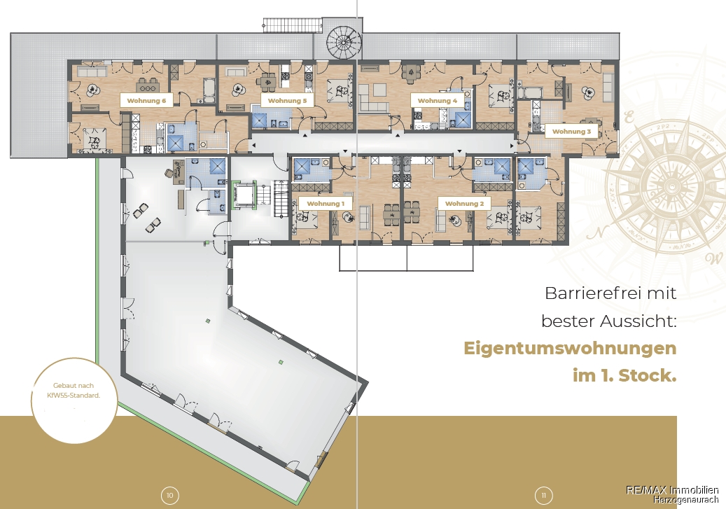Die Wohnung befindet sich in einer modernen Wohnanlage mit nur 16 Einheiten, die durch ein innovatives Wohnkonzept besticht: Neben klassischen Wohnungen umfasst sie eine Tagespflege, eine ambulant betreute Wohngemeinschaft, sowie ein Gesundheitszentrum mit einer neurogeriatrischen Therapiepraxis. Dadurch entsteht ein besonders sicheres und komfortables Wohnumfeld, das Wohnen im Alter und betreutes Wohnen ideal kombiniert.