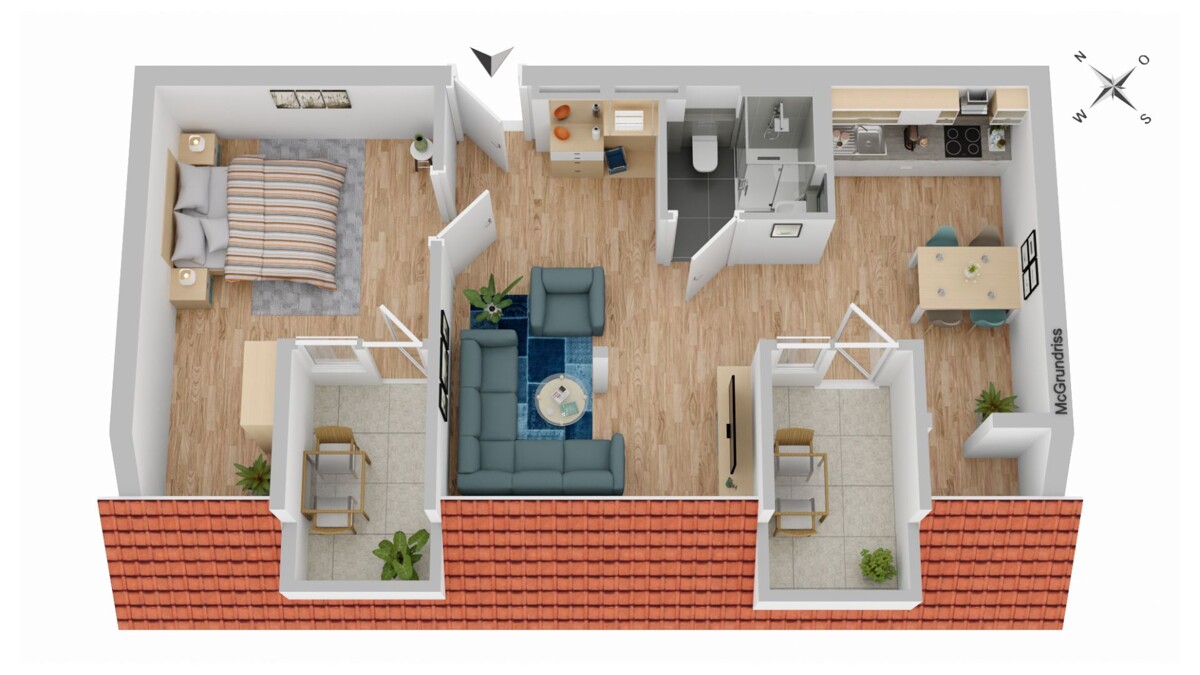 Die Betreuung über das Rote Kreuz kann - muss aber nicht mit gebucht werden. Somit können Sie die Wohnung beziehen und so lange autark leben, bis eine eventuelle Betreuung nötig sein sollte. Bis dahin bewohnen Sie die Immobilie wie jede andere Wohnung auch ohne zusätzliche Kosten oder Verpflichtungen. Auch für Anleger im Bereich Pflegeimmobilien ist diese Wohnung attraktiv und kann gerne von uns vermietet werden.