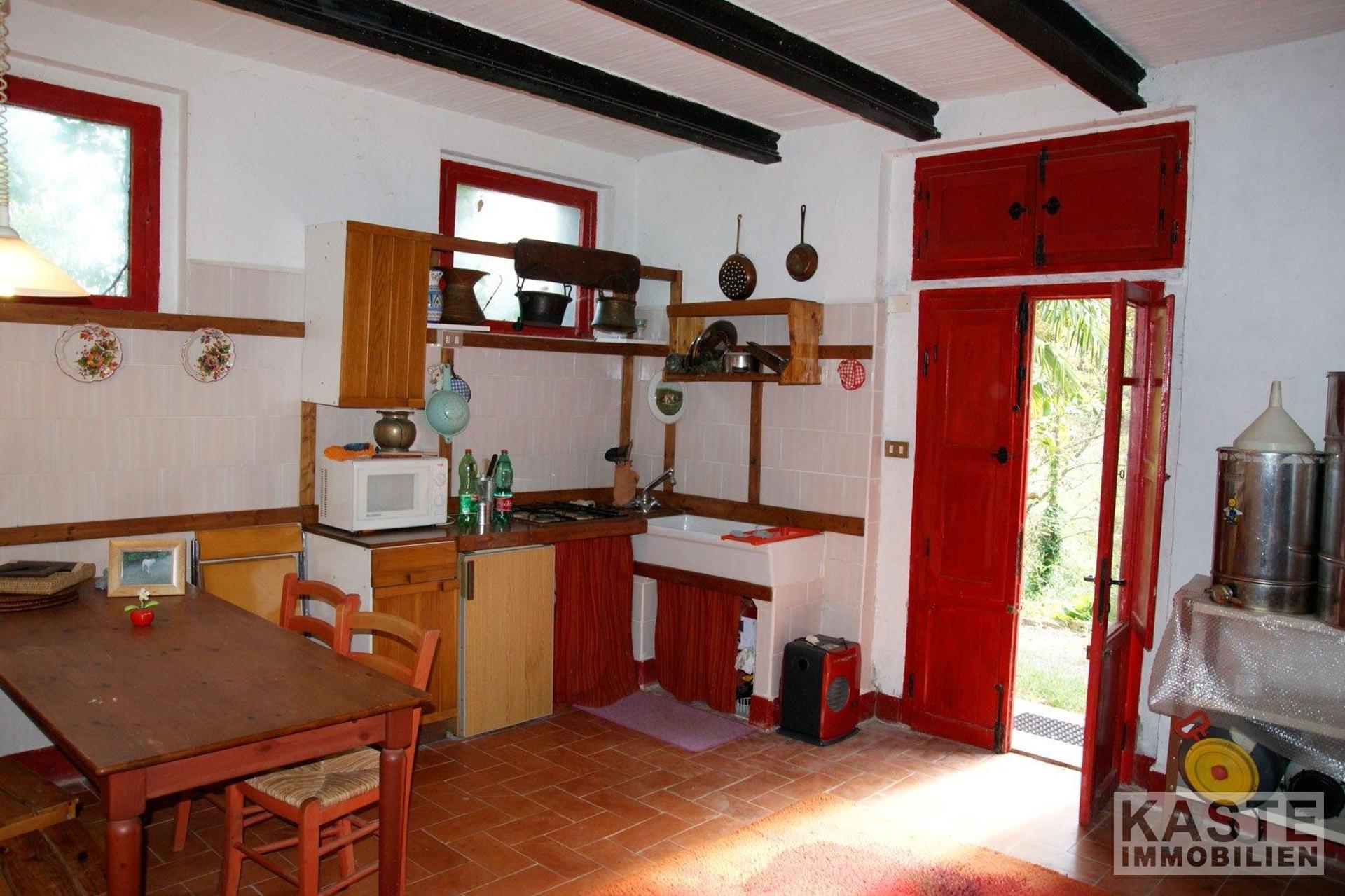 Das angebotene Anwesen liegt in der Gemeinde Chianni in der Toskana und umfasst ein ca. 220 m² großes Haupthaus, aufgeteilt in zwei separate Einheiten, sowie zwei Nebengebäude. Die Erdgeschosswohnung verfügt über eine Küche, ein Schlafzimmer und ein Badezimmer auf etwa 50 m². Der Hauptteil des Hauses erstreckt sich über zwei Etagen mit offen gestalteter Wohnküche, Kamin, Kaminofen und einem klimatisierten Schlafzimmer. Zur Ausstattung gehören eine Pellet-Heizung für Wärme und Warmwasser, doppelt verglaste Fenster und eine gedämmte Dachkonstruktion.