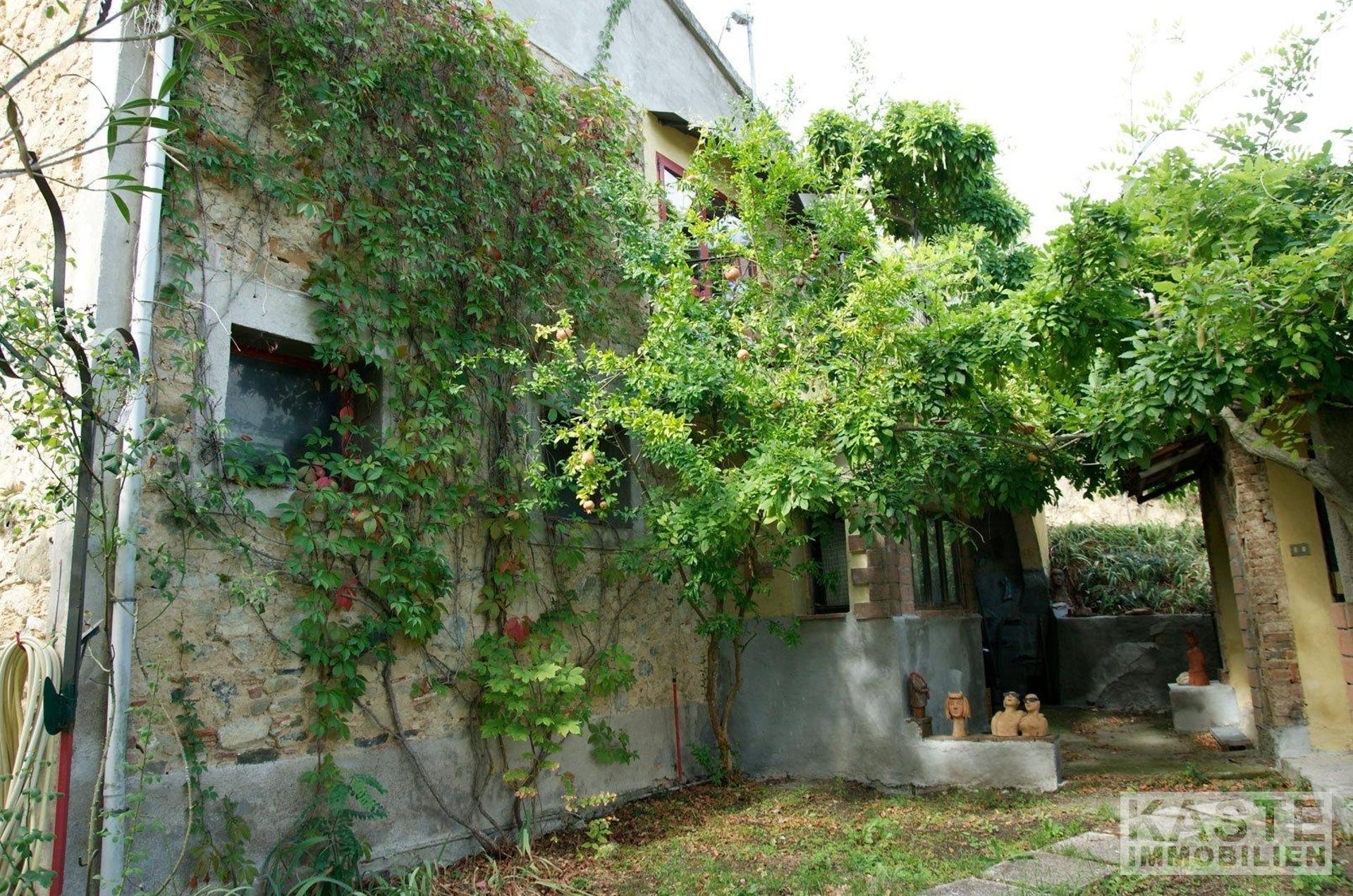 Das angebotene Anwesen liegt in der Gemeinde Chianni in der Toskana und umfasst ein ca. 220 m² großes Haupthaus, aufgeteilt in zwei separate Einheiten, sowie zwei Nebengebäude. Die Erdgeschosswohnung verfügt über eine Küche, ein Schlafzimmer und ein Badezimmer auf etwa 50 m². Der Hauptteil des Hauses erstreckt sich über zwei Etagen mit offen gestalteter Wohnküche, Kamin, Kaminofen und einem klimatisierten Schlafzimmer. Zur Ausstattung gehören eine Pellet-Heizung für Wärme und Warmwasser, doppelt verglaste Fenster und eine gedämmte Dachkonstruktion.