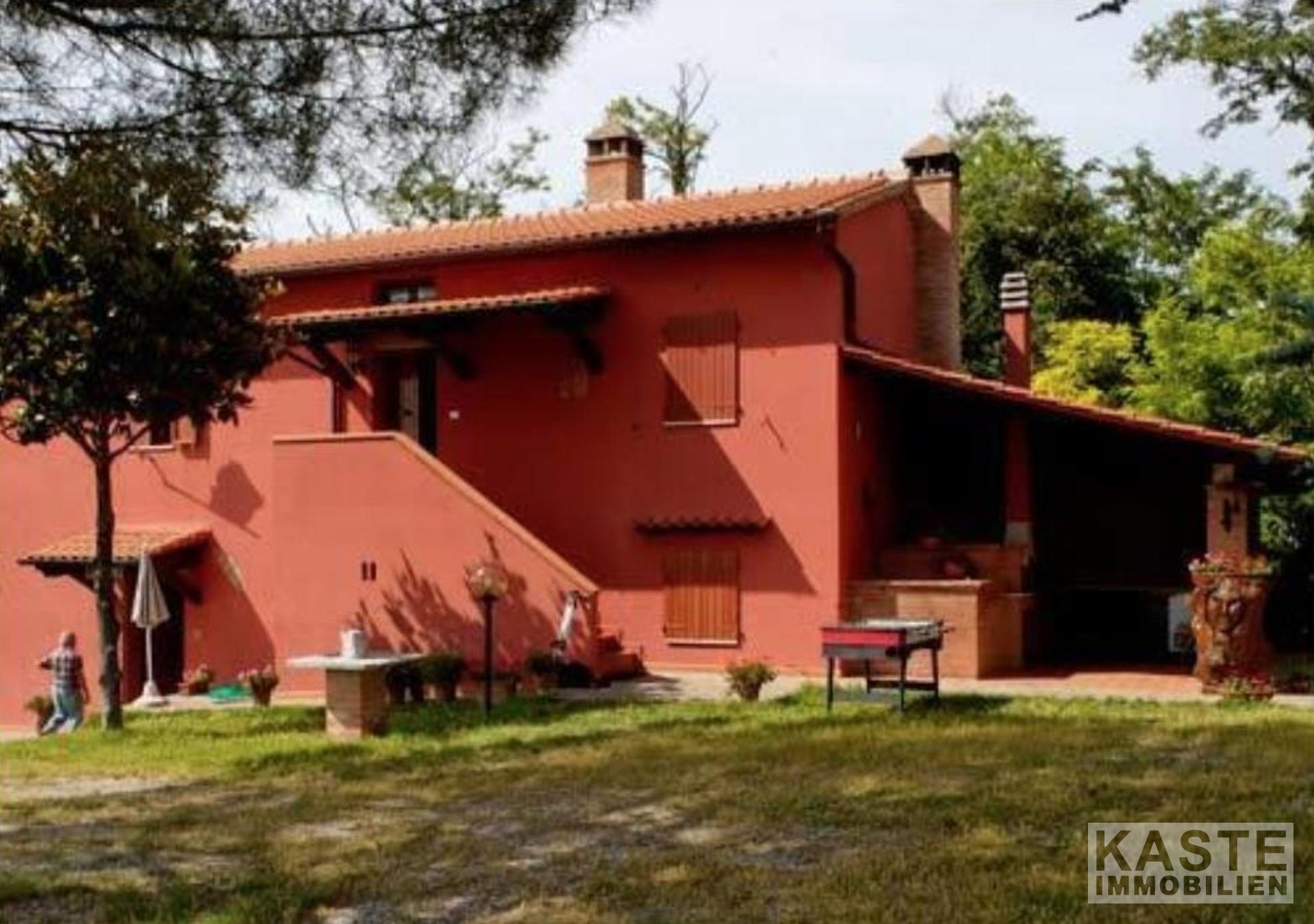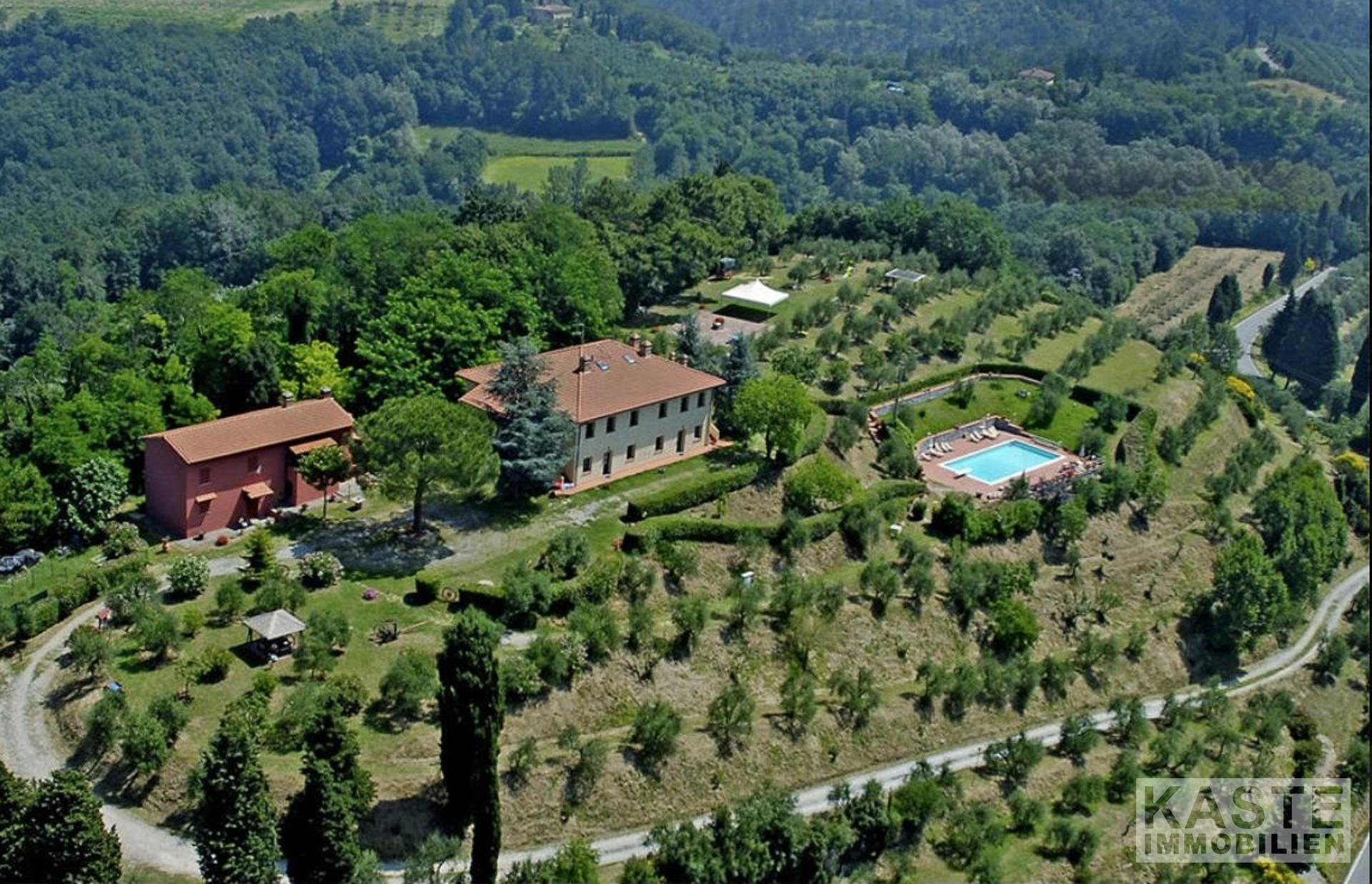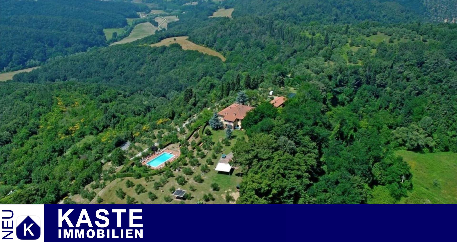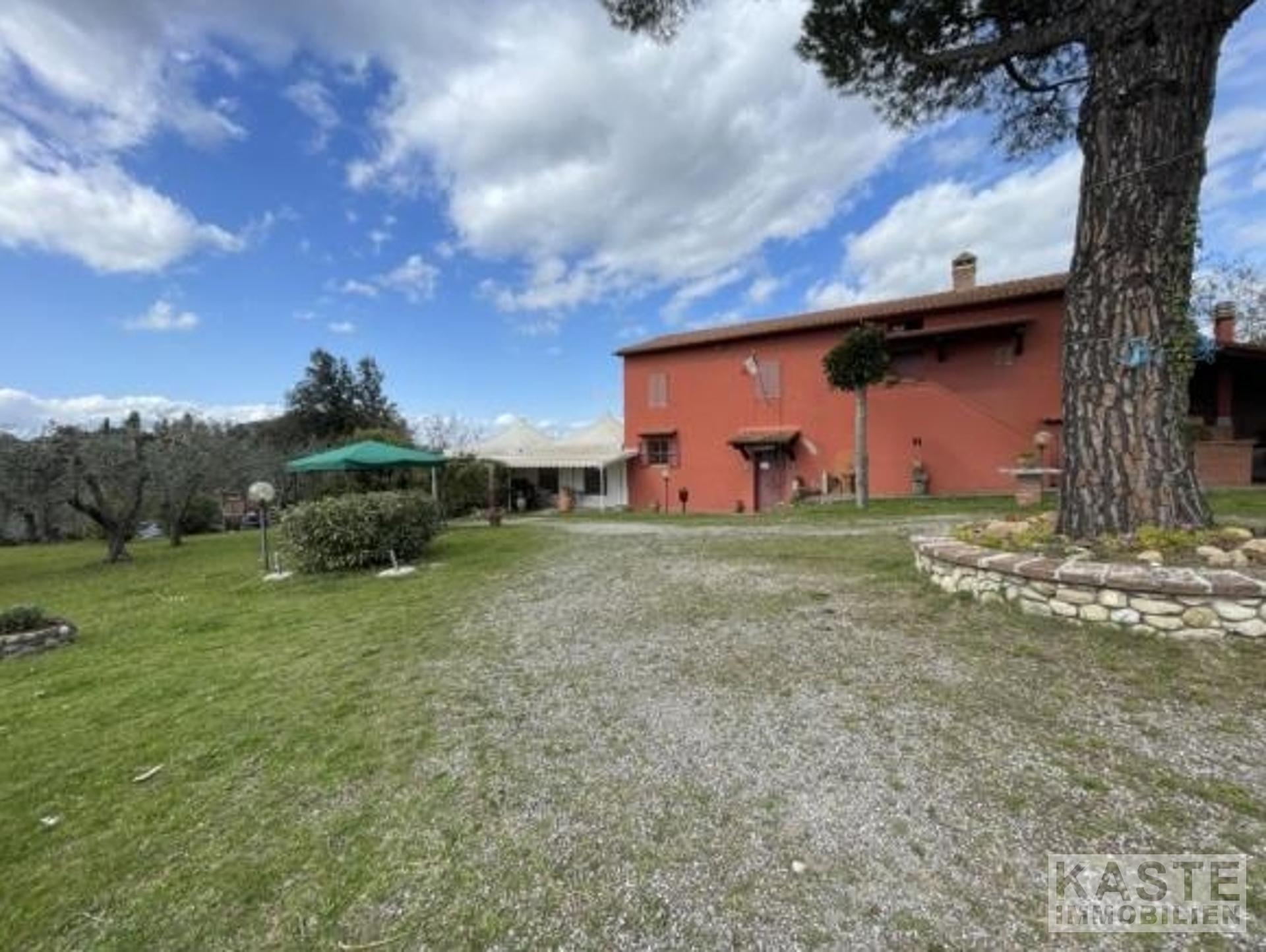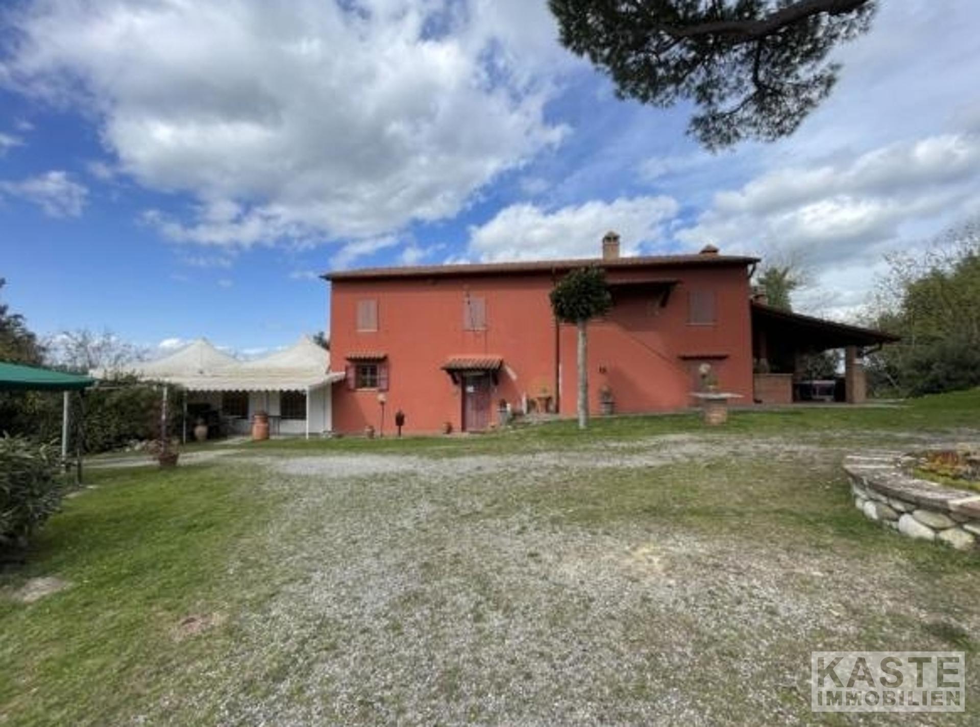 Bauernhäuser mit Swimmingpool, Olivenhaine, Wege und Terrassen inmitten eines 20.000 qm großen, vollständig eingezäunten Parks, der die bezaubernde Landschaft der toskanischen Hügel beherrscht. Das Anwesen umfasst 2 Landhäuser. Das Haupthaus ist 480 qm groß und wurde vom Eigentümer als Bauherrn mit viel Liebe zum Detail und mit hochwertigen Materialien restauriert. Das Haus wurde in 4 Apartments aufgeteilt, die als Touristenunterkünfte genutzt werden. - Erdgeschoss, 2 Wohnungen von je 120 qm, mit 3 Schlafzimmern und 2 Bädern, plus ein Wohnzimmer mit Küche-Esszimmer-Wohnzimmer von etwa 50 qm. - Erster Stock, 2 Apartments von je 140 qm, 4 Schlafzimmer und 3 Bäder, Wohnzimmer mit Küche-Esszimmer-Wohnzimmer, das über eine exklusive überdachte Panoramaterrasse führt; Die Rote Villa wird als Hauptwohnsitz für die Eigentümer genutzt, sie besteht aus 190 qm + 20 qm überdachter Lodge. Die Wohnung der Eigentümer im ersten Stock verfügt über ein Wohnzimmer, 2 Schlafzimmer und ein Badezimmer. Im Erdgeschoss befinden sich die Rezeption, die in den ehemaligen Stallungen untergebracht ist, eine Küche und ein großer Hauswirtschaftsraum. Es gibt die Erlaubnis, ein Restaurant nur für die Gäste des Bauernhauses zu betreiben. Land mit Olivenbäumen und Gärten mit Blumen und vielen Plätzen zum Entspannen und um die Aussicht zu genießen. Der 14x6m große SCHWIMMBECKEN blickt auf eine unberührte Landschaft in der Hochebene von ValdEra. Das Schwimmbad ist mit Chlor behandelt. 90qm überdachter Bereich mit Pavillons und Festzelt für Veranstaltungen und Zeremonien Es besteht die Möglichkeit, 340 Kubikmeter einer alten Scheune im Inneren des Grundstücks zu nutzen. Die Struktur umfasst auch: Holzofen, Grill, Tische, Pavillon; Automatischer Eingang; Telefon und Internet ADSL; Unterirdischer LPG-Gasspeicher; Wasser des Aquädukts mit Wasserenthärter behandelt; Perkolator für die Abwasseraufbereitung; Unterirdische Tanks für die Rückgewinnung von Regenwasser für die Bewässerung; Bewässerungssystem und Außenbeleuchtungssystem; Perimeter-Alarmsystem der Immobilie