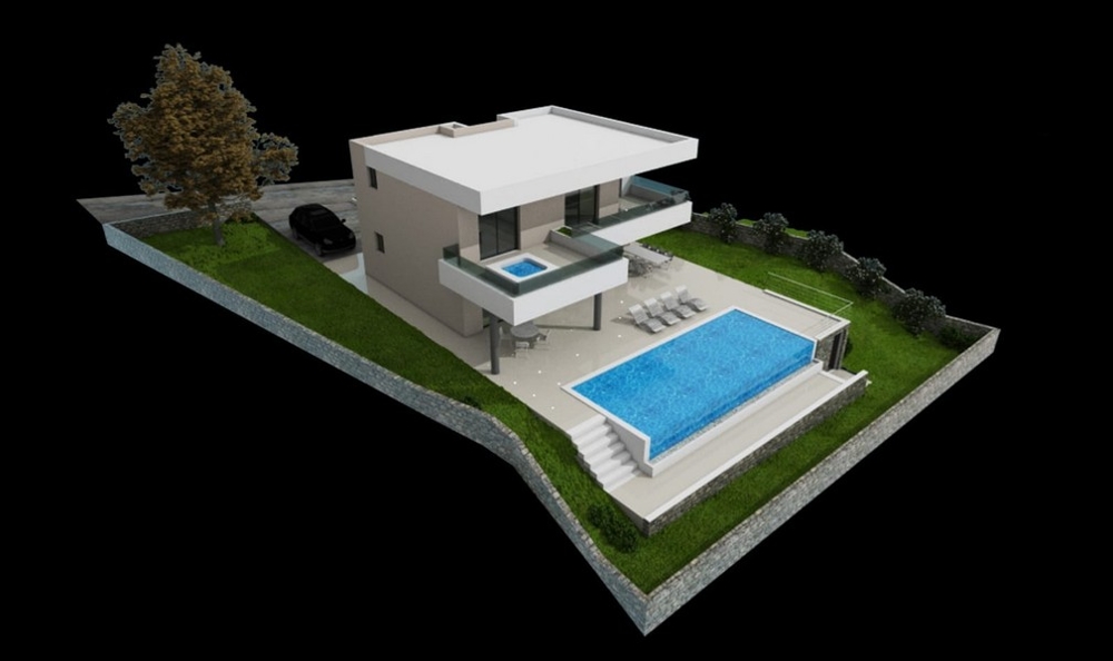 Bei diesem Angebot handelt es sich um ein Baugrundstück mit Baugenehmigung und bestehendem Projekt für eine moderne Villa mit schönem Meerblick in Vinisce, Region Trogir.