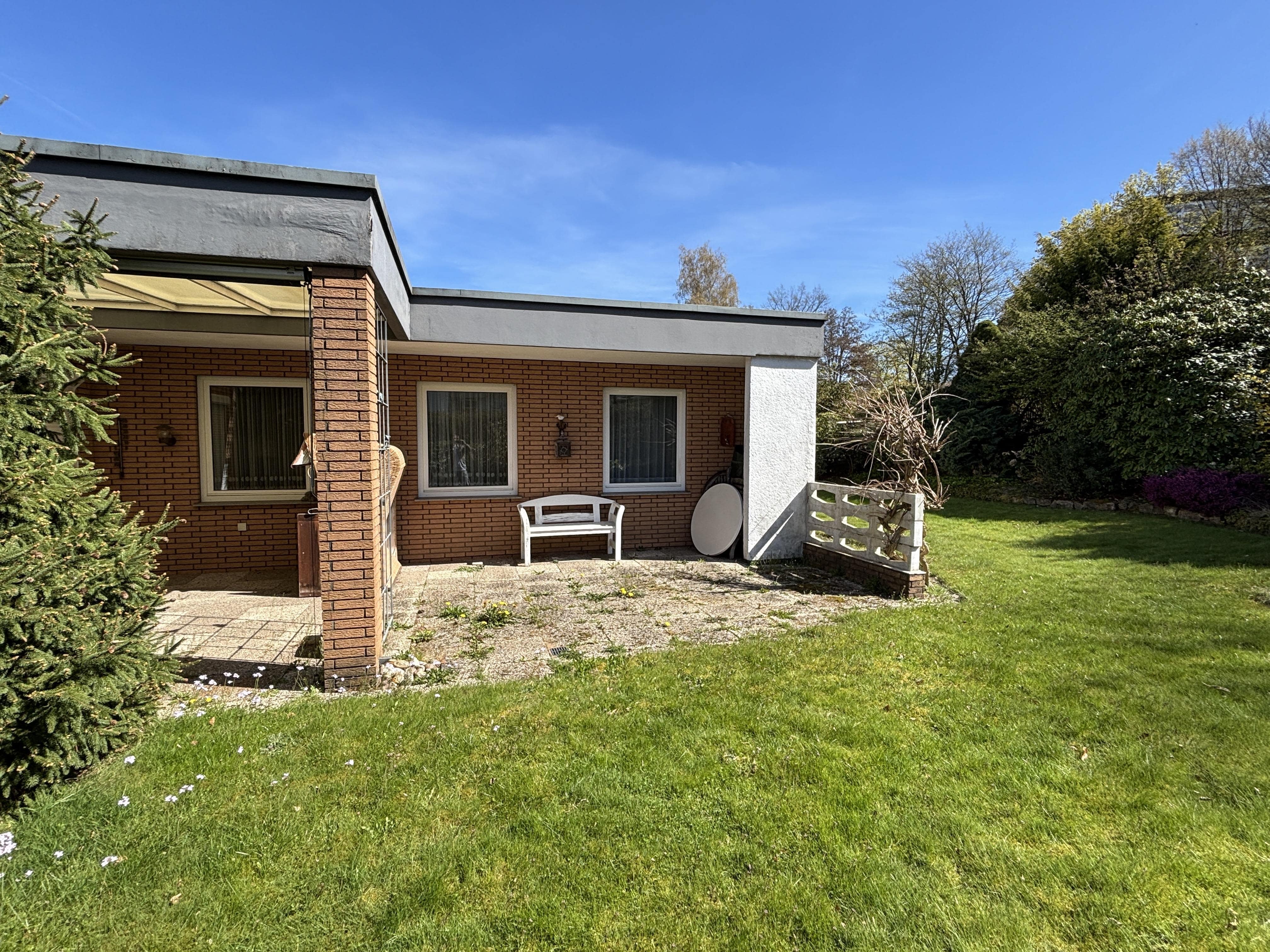 Im Detmolder Zentrum, in unmittelbarer Nähe zum Stadtgymnasium, befindet sich dieser Winkelbungalow. Dieser Wohnklassiker ist bei allen Generationen sehr beliebt, da das Wohnen auf einer Ebene viele Vorteile bietet. Gestalten und modernisieren Sie Ihr zukünftiges Zuhause nach Ihren Wünschen, sodass Sie schon bald Ihr Eigenheim in vollen Zügen genießen können. Freuen Sie sich auf eine große Terrasse mit Feierabendsonnenausrichtung und auf einen Garten der genug Platz zum Spielen für die Kinder oder Enkelkinder bietet. Ein Gartenhaus zum Abstellen der Gartengeräte ist schon vorhanden. Für Ihren Pkw gibt es eine Garage unweit des Hauses.