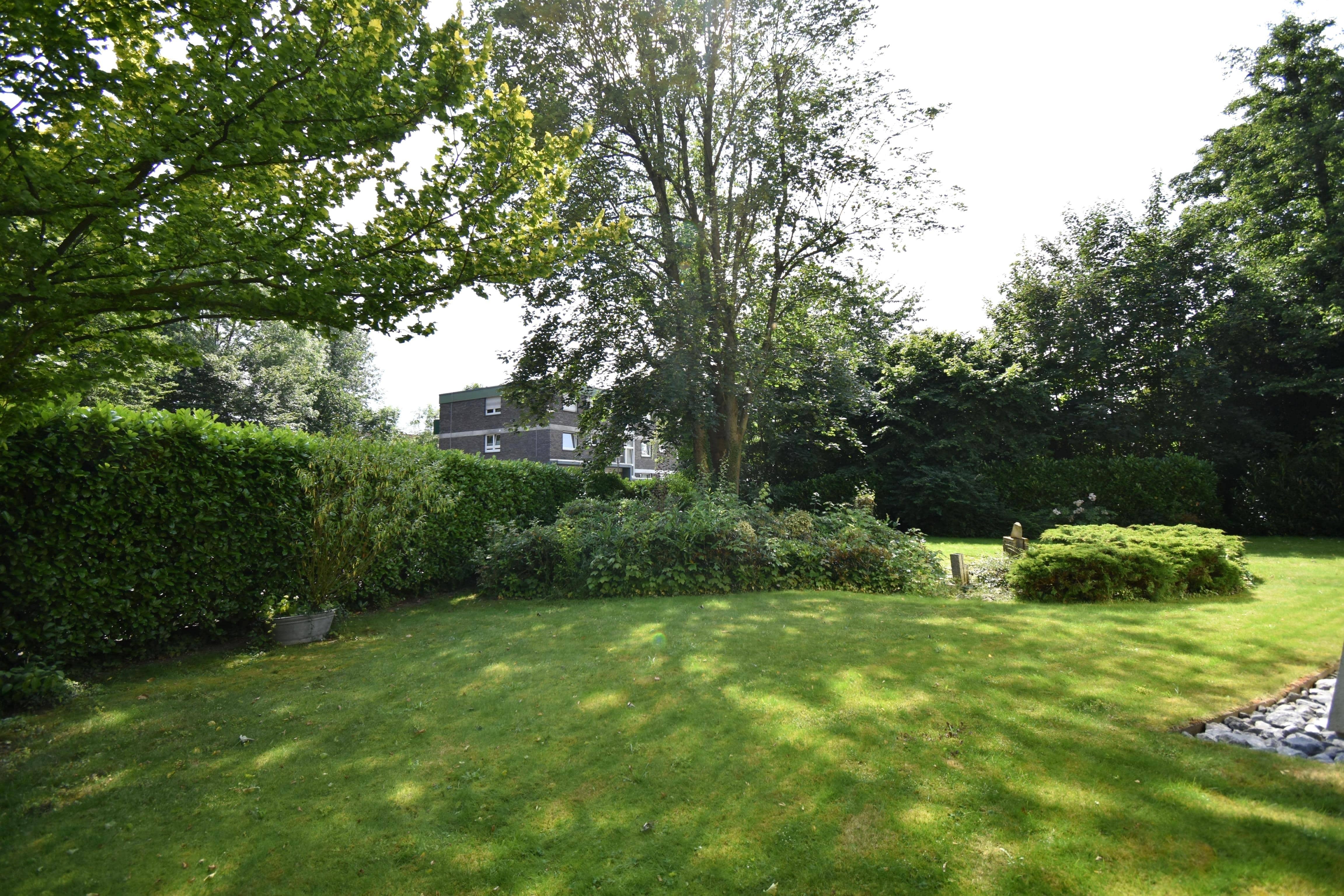Der pflegeleicht gestaltete und gleichzeitig uneinsichtige Garten ist über die Küche und das Wohnzimmer zu erreichen. Somit befinden sich auf der Südost und auf der Nordwest-Seite zwei Terrassen zum verweilen. Das Carport ist passend zum Haus ebenfalls mit einem runden Gründach errichtet. Dieses bietet Platz für zwei Autos und verfügt zudem noch über einen geräumigen Geräteraum.