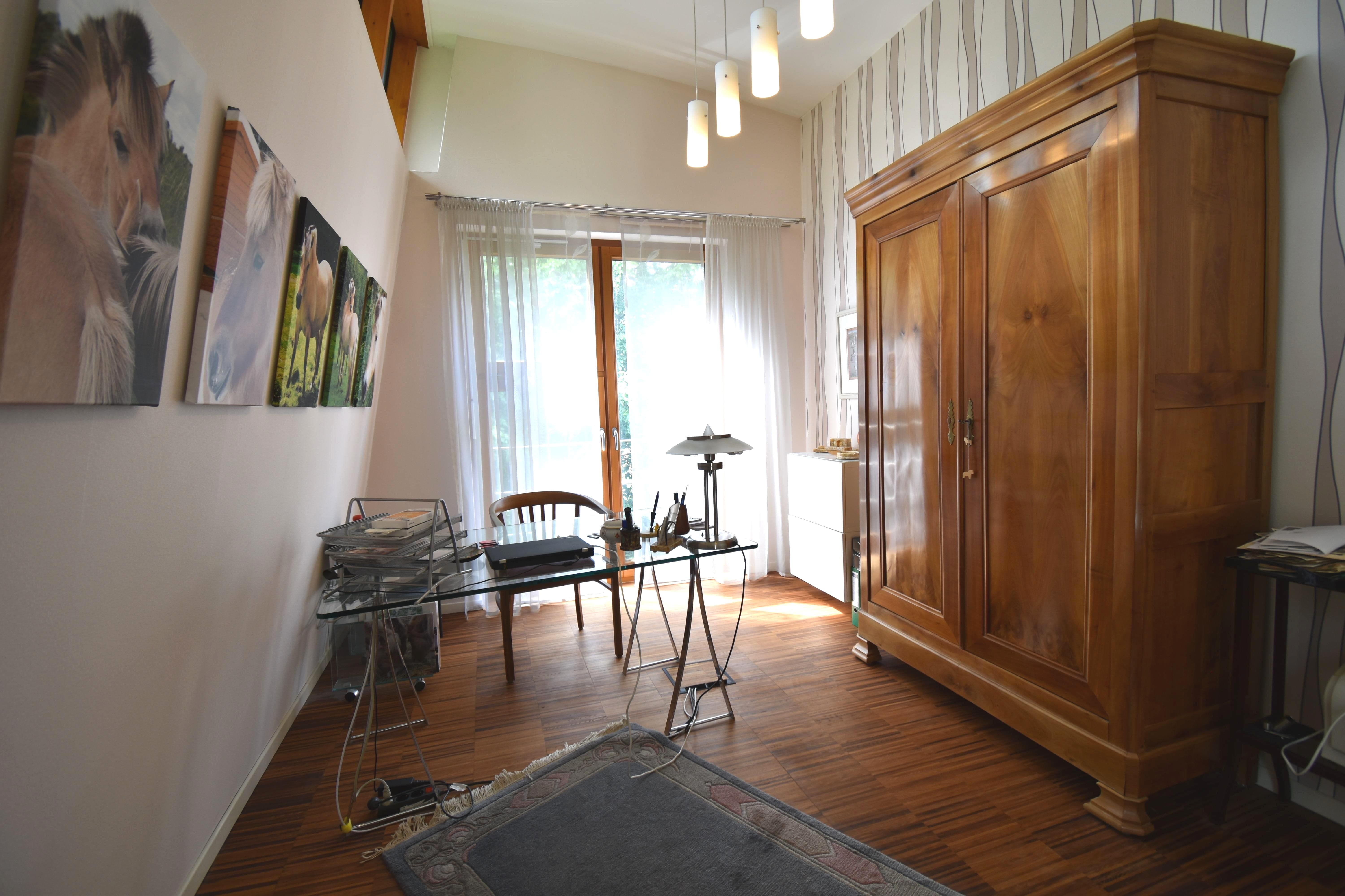 Das Haus ist mit vielen hochwertigen Tischlerarbeiten, wie einem TV-Schrank im Wohnzimmer, einem Bücherregal in der Galerie oder maßangefertigten Schränken inklusive Beleuchtung in der Ankleide ausgestattet. Diese Möbelstücke verbleiben im Haus und sind Teil des Angebots. In den Wohnräumen ist zusätzlich hochwertiger Parkettboden verlegt.