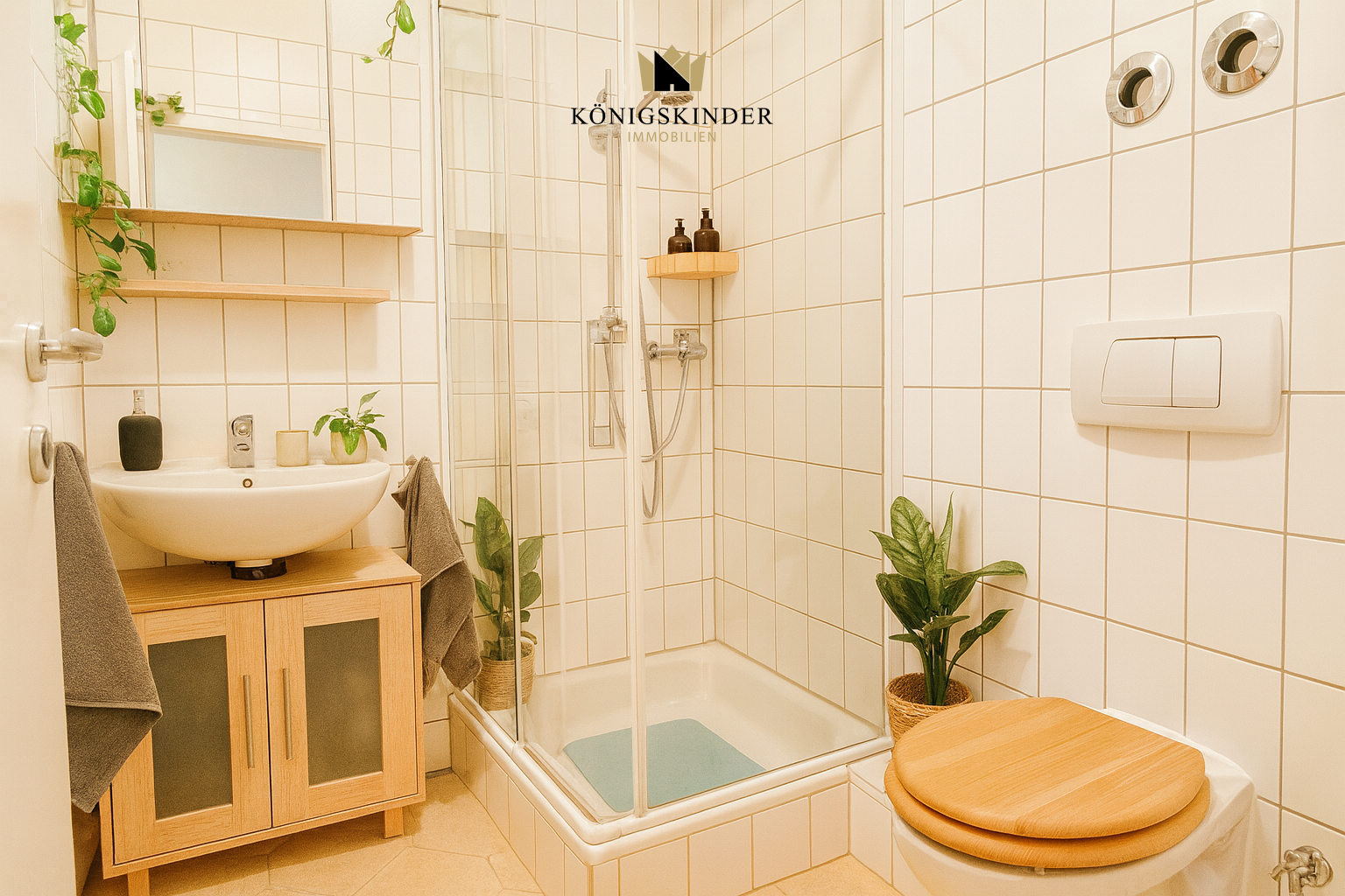 Das Badezimmer ist innenliegend, gepflegt ausgestattet und verfügt über eine Entlüftung.