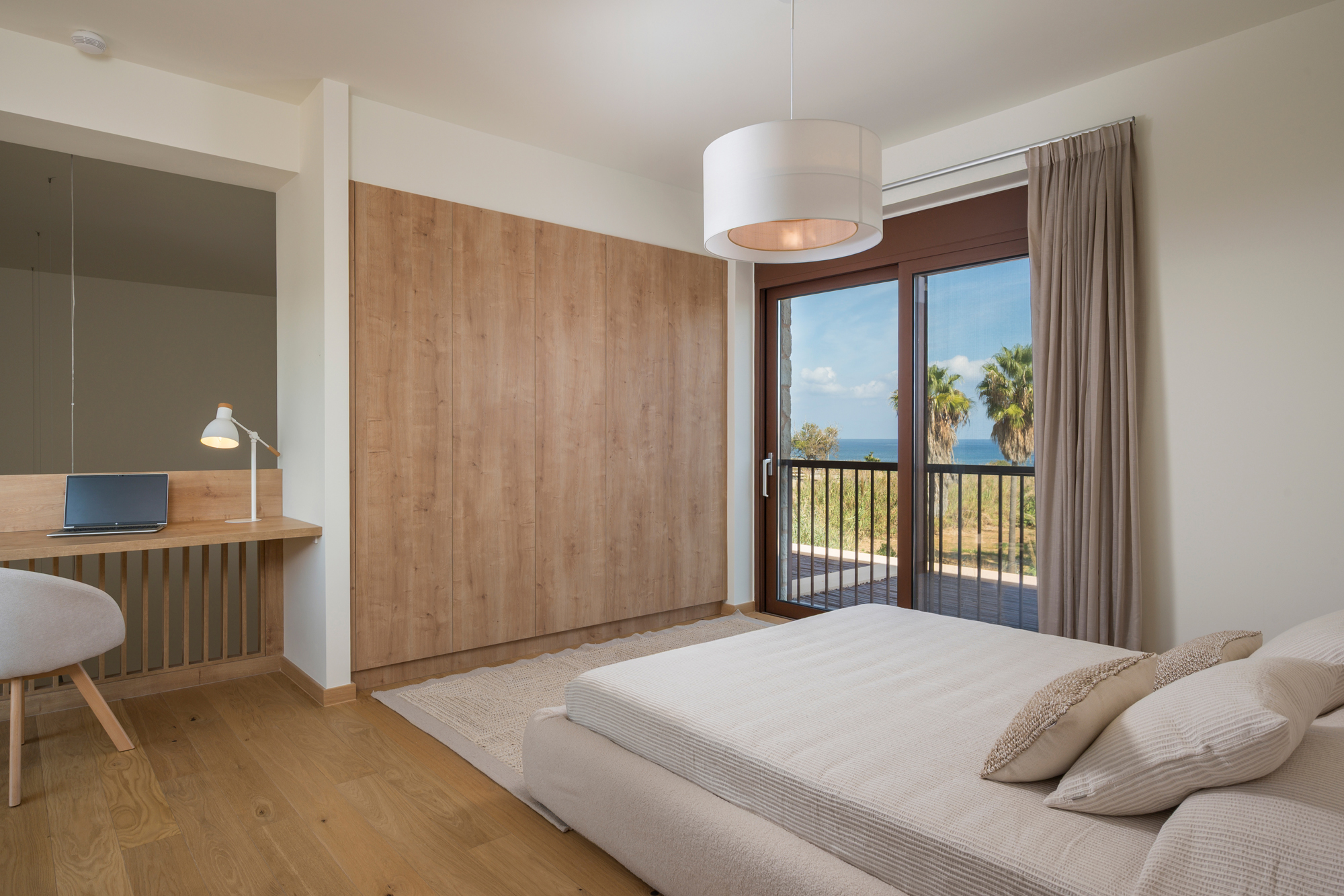 Auf der oberen Ebene (2. OG) befinden sich das zweite Schlafzimmer mit eigenem Bad, außerdem eine Galerie mit Arbeitsbereich und Blick in den Wohnbereich – ein klarer Mehrwert, wenn man die Immobilie nicht nur „für Ferien“, sondern auch für längere Aufenthalte nutzt. Ein zusätzlicher Ein-/Ausgang auf dieser Ebene erhöht die Flexibilität im Alltag.