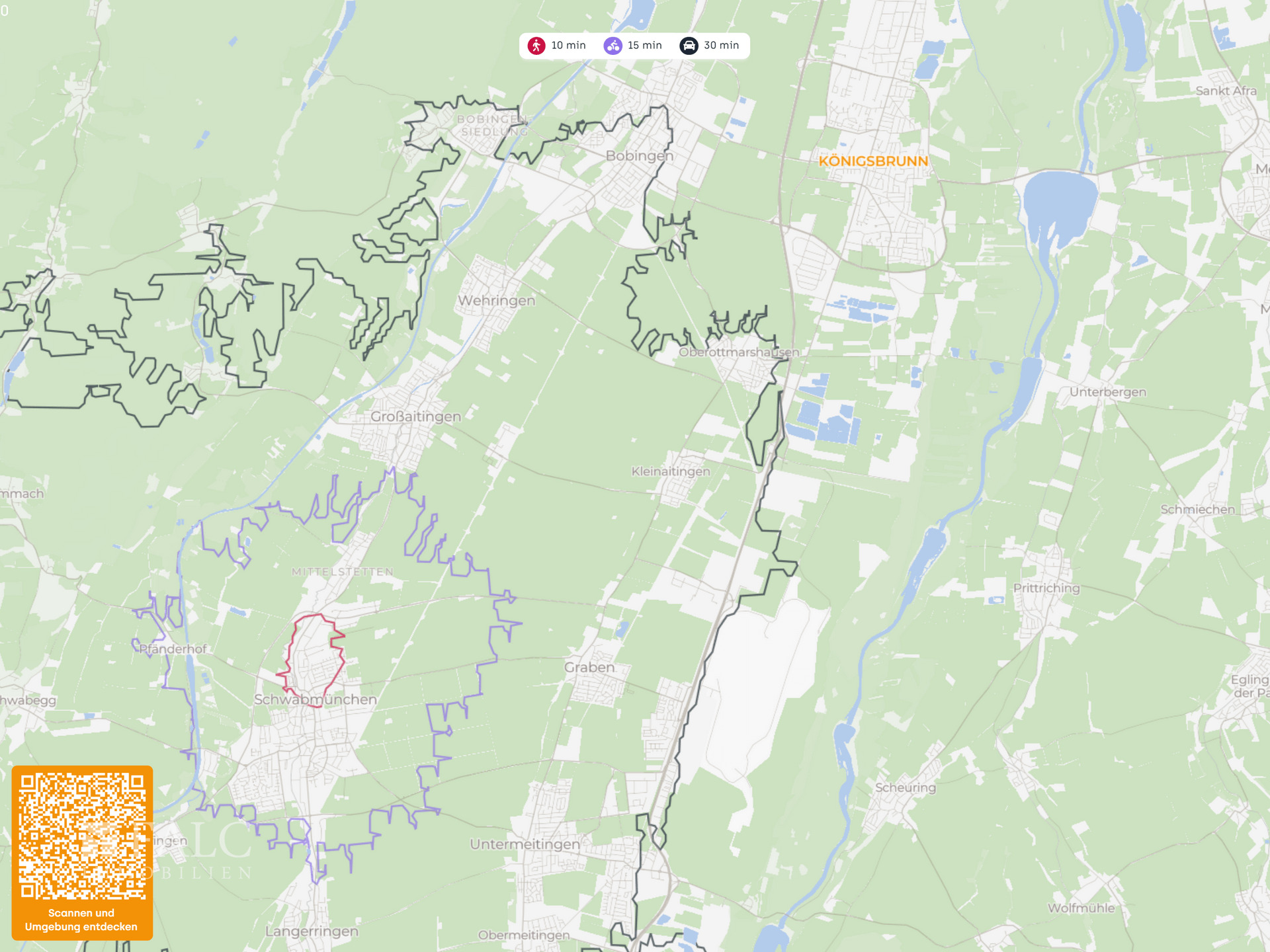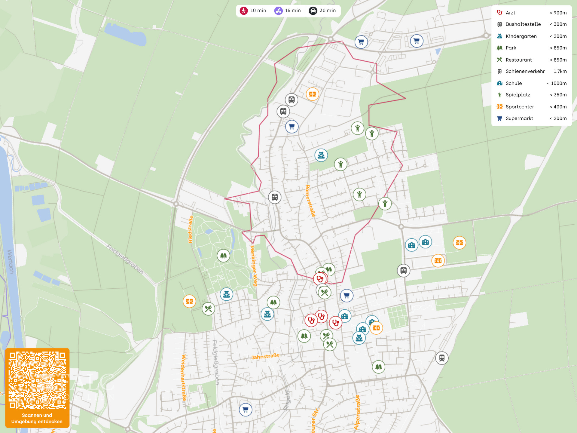 - Verkehrsanbindung: - Öffentliche Verkehrsmittel: Mehrere Bushaltestellen sind fußläufig erreichbar, darunter Schwabmünchen Osram sowie Schwabmünchen Sägewerk. Der Bahnhof Schwabmünchen ist in wenigen Minuten mit dem Fahrrad oder Auto erreichbar und bietet eine gute regionale Schienenanbindung. - Straßenanbindung: Die Lage profitiert von der schnellen Erreichbarkeit der überregionalen Achsen im Raum Augsburg. Die Bundesstraße B17 ist in wenigen Minuten mit dem Auto erreichbar und verbindet Richtung Augsburg sowie Landsberg. Die Autobahn A8 ist über den Raum Augsburg ebenfalls gut angebunden. - München ist über die A96 in ca. 80 km erreichbar. Der Flughafen München liegt in etwa 80 km Entfernung, der Flughafen Memmingen in ca. 55 km. - Parkmöglichkeiten: Im Umfeld sind typischerweise öffentliche Stellplätze im Straßenraum vorhanden; je nach Objekt können zusätzliche private Stellplätze oder Garagen die Vermietbarkeit weiter stärken. - Einrichtungen des täglichen Bedarfs: - Supermärkte, Discounter, Bäckereien, Apotheken: Die Nahversorgung ist sehr komfortabel. NORMA liegt in der Nähe, ebenso Drogerie Müller. Weitere Einkaufsmöglichkeiten wie REWE sowie ALDI Süd sind in wenigen Minuten mit dem Fahrrad oder Auto erreichbar. Damit ist die Lage für Mieterinnen und Mieter besonders alltagstauglich. - Bildungseinrichtungen: - Kindergärten, Schulen (Grundschulen, weiterführende Schulen): Der Kindergarten St. Anna ist in der Nähe. Weitere Betreuungseinrichtungen wie der Luise-Scheppler-Kindergarten sind gut erreichbar. Mit der Leonhard-Wagner-Mittelschule und weiteren Schulen im Stadtgebiet besteht eine solide Bildungsinfrastruktur, was die Nachfrage bei Familien und langfristigen Mietverhältnissen unterstützt. - Gesundheitsversorgung: - Ärzte, Fachärzte, Krankenhäuser: Mehrere Arztpraxen und Zahnärzte befinden sich im näheren Umfeld. Für die stationäre Versorgung ist die Wertachklinik Schwabmünchen gut erreichbar; darüber hinaus ist das Universitätsklinikum Augsburg als Maximalversorger im Großraum in sinnvoller Distanz angebunden.