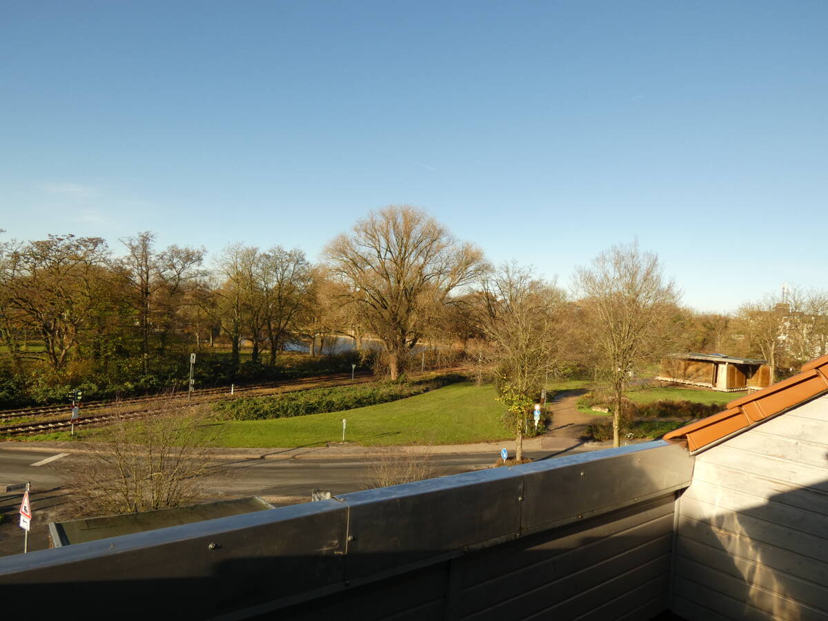 Mittig des Flurs befindet sich das hell geflieste Bad mit Badewanne und ebenerdiger Dusche. Weiter erreichen Sie rechtsseitig des Flurs das offene Wohn-/Esszimmer mit offener Küche. Die Einbauküche inkl. E-Geräte ist Teil des Angebotes. Von diesem Zimmer aus haben Sie Zugang auf die nach Westen ausgerichtete Loggia, die einen wunderschönen Ausblick auf den Kirchturm und den Kurpark gewährt.