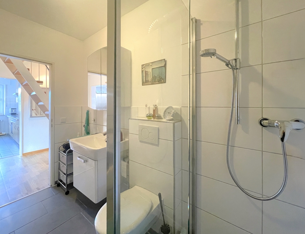 HauseingangRückwärtige AnsichtFlur mit Zugang zum ausgebauten SpitzbodenHelles WohnzimmerWohn-/Esszimmer mit Zugang zur LoggiaSonnenplatz mit...atemberaubender AussichtKücheZimmerZimmerModernes DuschbadToller SpitzbodenraumEigener TiefgaragenplatzHauseingang