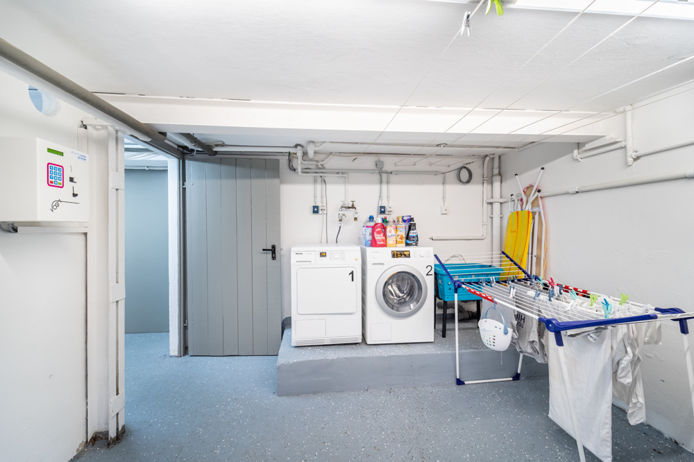 SONSTIGES Im Keller steht für die Wäsche eine komplette Waschanlage mit MIELE Waschmaschine und MIELE Trockner gegen Entgelt zur Verfügung. Ein Wäscheständer, Bügeleisen und Bügelbrett kann man kostenlos nutzen.
