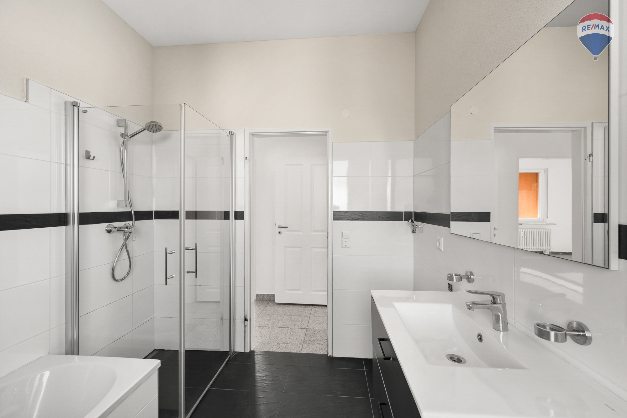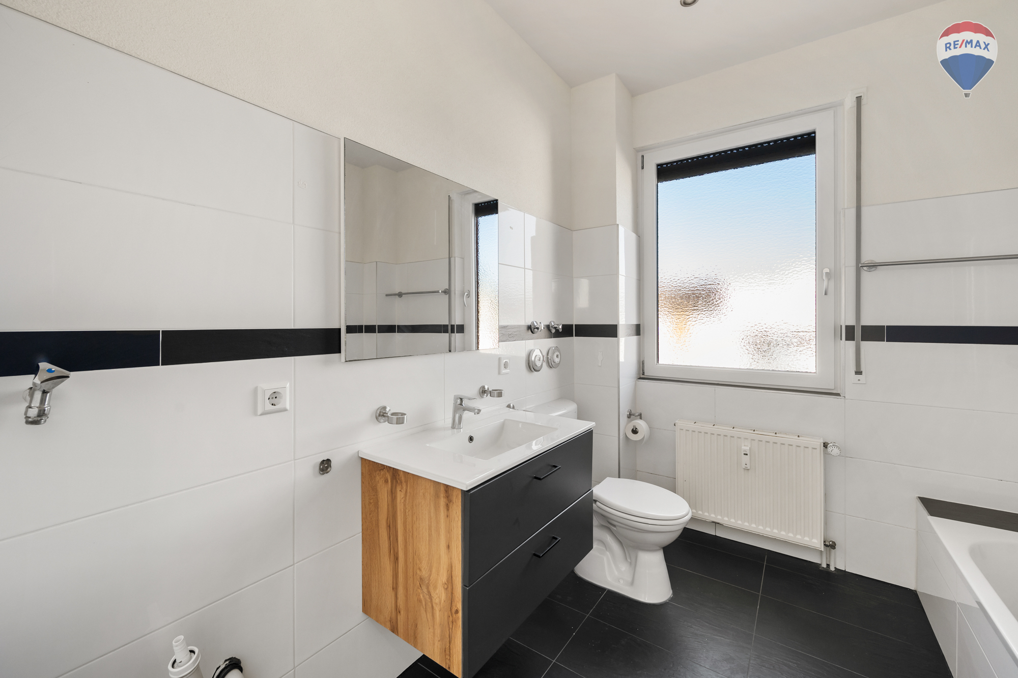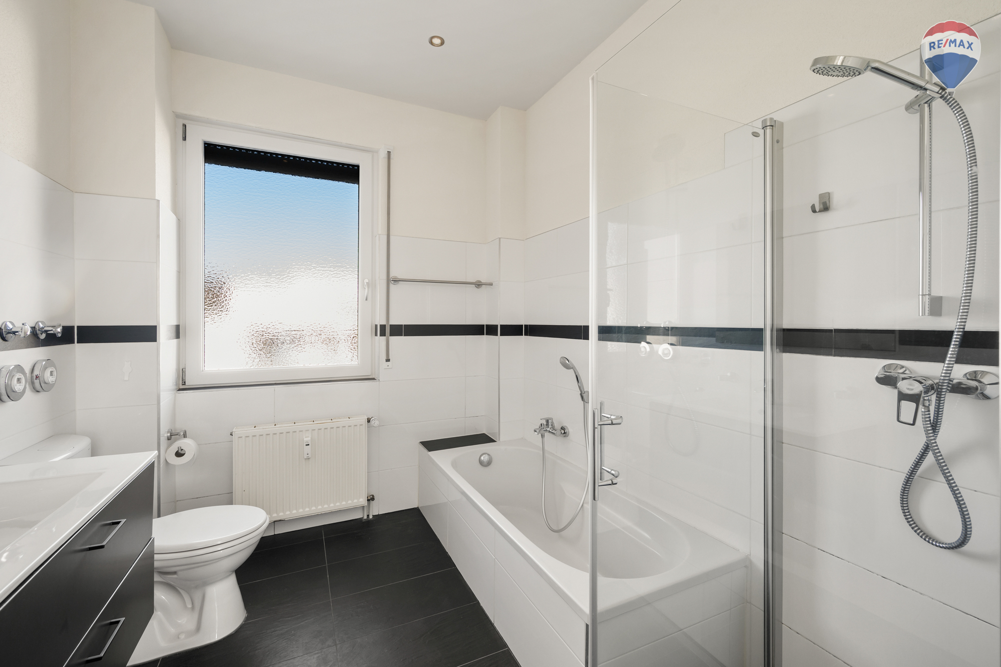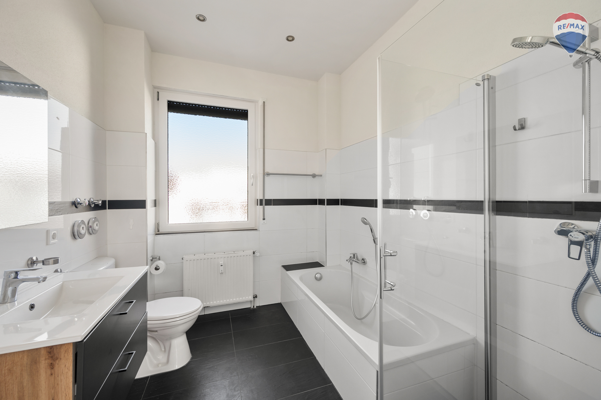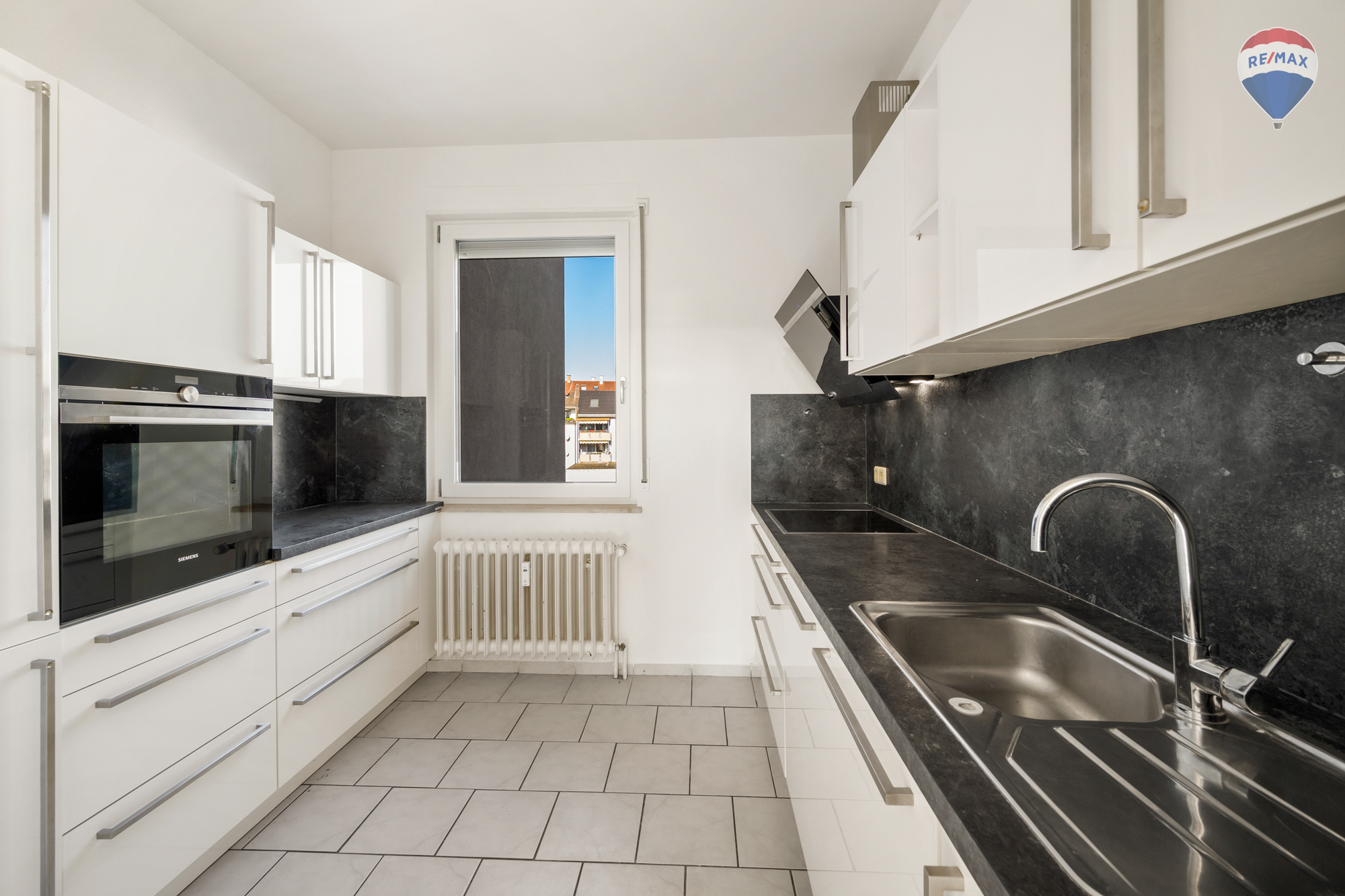 Die neue Einbauküche bietet viel Stauraum und Platz für kulinarische Kreativität. Ein Ort, an dem Kochen zum Genuss wird. Das moderne Badezimmer präsentiert sich in zeitloser Optik mit hochwertigen Sanitärelementen, bodentiefer Dusche und Tageslicht.