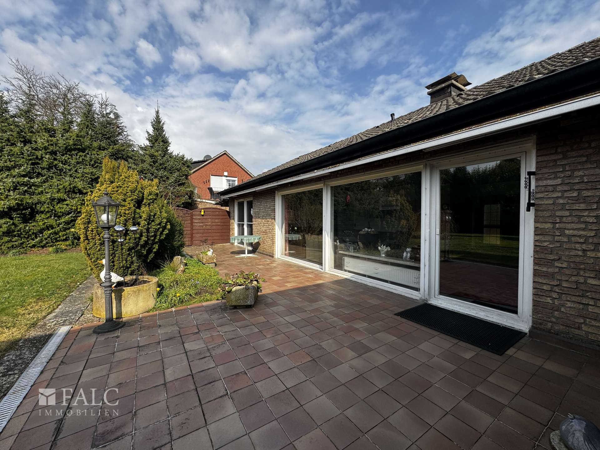 • Große Terrasse • Zugang zur Terrasse über Wohnzimmer und Schlafzimmer • Großer Garten mit vielfältigen Gestaltungsmöglichkeiten • Großer Garten- und Freizeitbereich • Kleiner Weg links am Haus entlang • Abdach zur Unterbringung von Gartengeräten • Besonders attraktiv für Heimwerker und Gartenliebhaber • Große Garage mit ca. 50 m² • Direkter Zugang von der Garage in den Keller