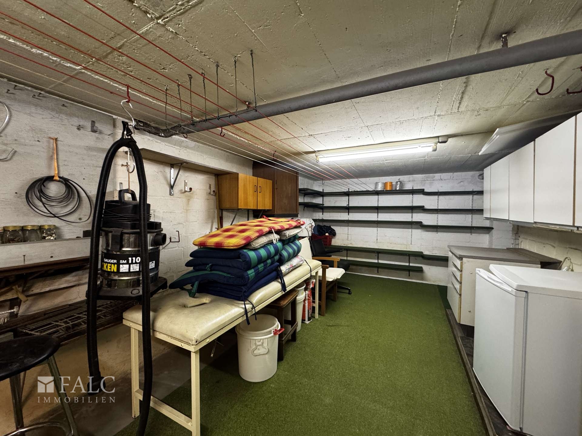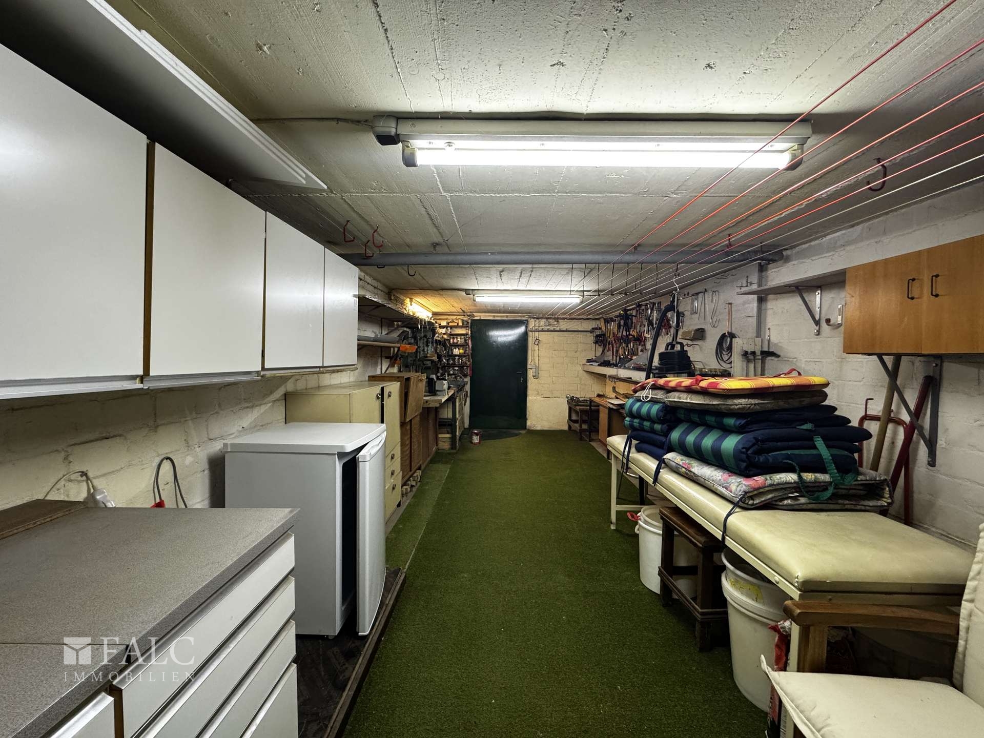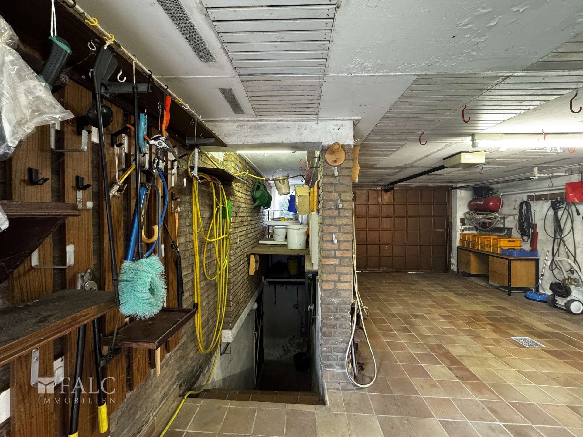 • Zugang zum Keller über das Haus • Zusätzlicher Kellerzugang über die Garage • Großer Kellerraum mit Werkbank • Raum zur Nutzung als Waschküche • Heizungskeller • Separate Räume für Haustechnik • Vorhandene Öltanks der Heizungsanlage • Vielseitig nutzbare Kellerflächen