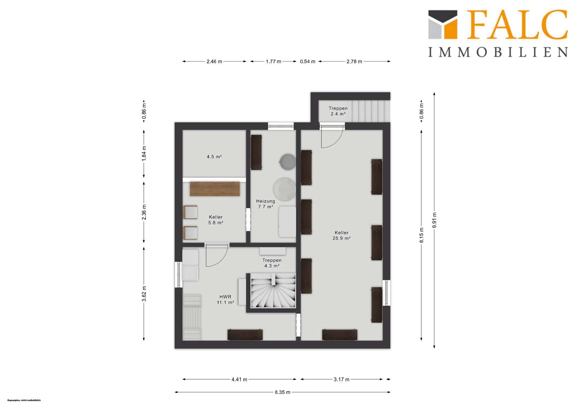 Die Flächenangaben spiegeln den aktuellen Kenntnisstand gemäß den vorliegenden Objektunterlagen wider. Da die Daten nicht auf einer aktuellen, gutachterlichen Wohnflächenberechnung basieren, dienen sie lediglich zur Orientierung und sind ohne Gewähr.