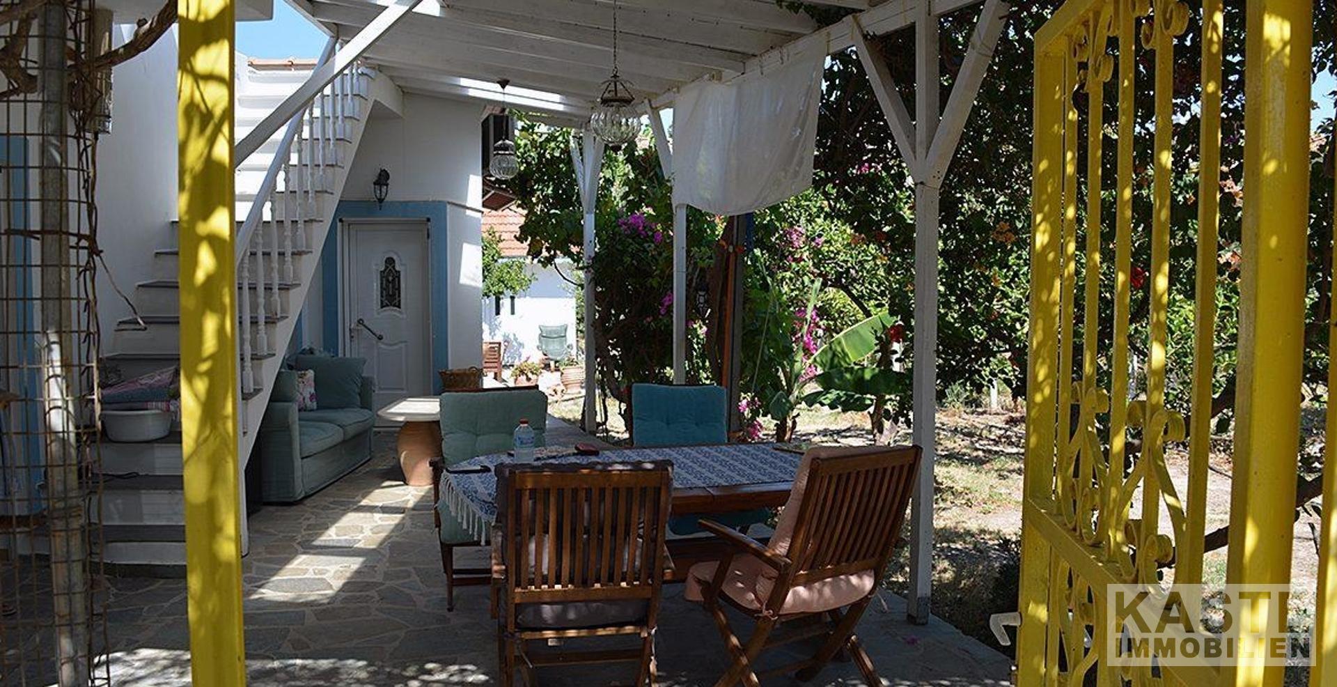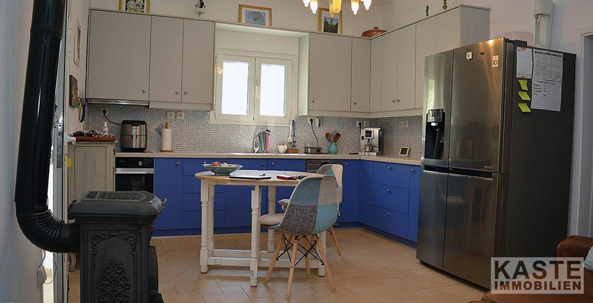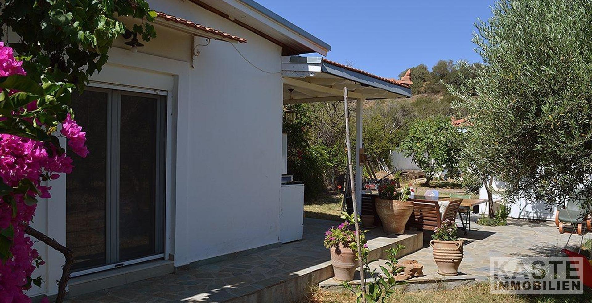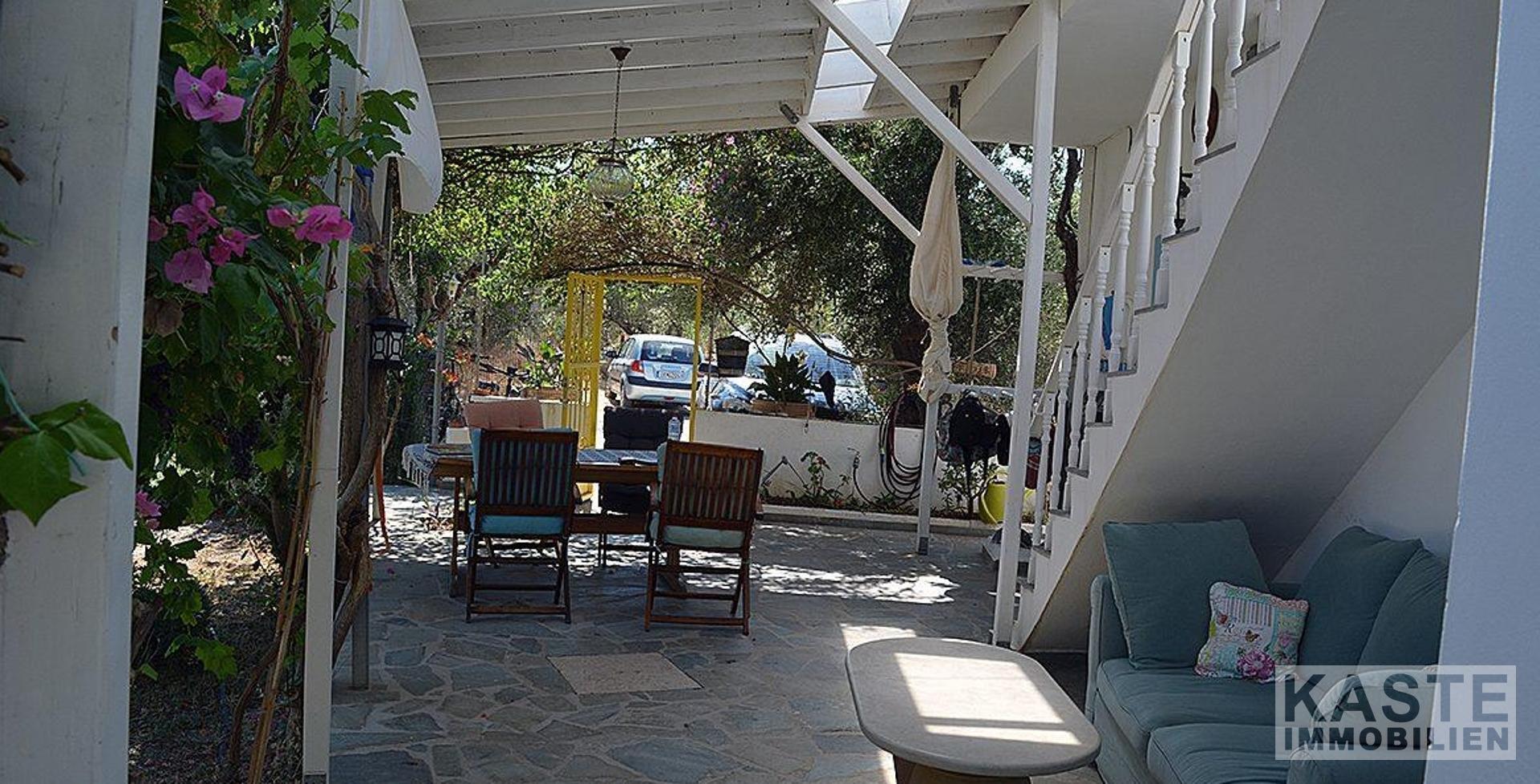 Ein besonderes Highlight dieses Anwesens ist der großzügige Außenbereich. Die schattige Terrasse bietet ausreichend Platz für einen Esstisch und Stühle sowie gemütliche Sitzgelegenheiten, um das warme Klima in vollen Zügen zu genießen. Die Außenküche ergänzt den Lebensraum im Freien perfekt und lädt dazu ein, Mahlzeiten unter freiem Himmel zu genießen. Der große, gepflegte Garten ist reich an Obstbäumen, Blumen und Pflanzen und erstreckt sich über das gesamte Grundstück.