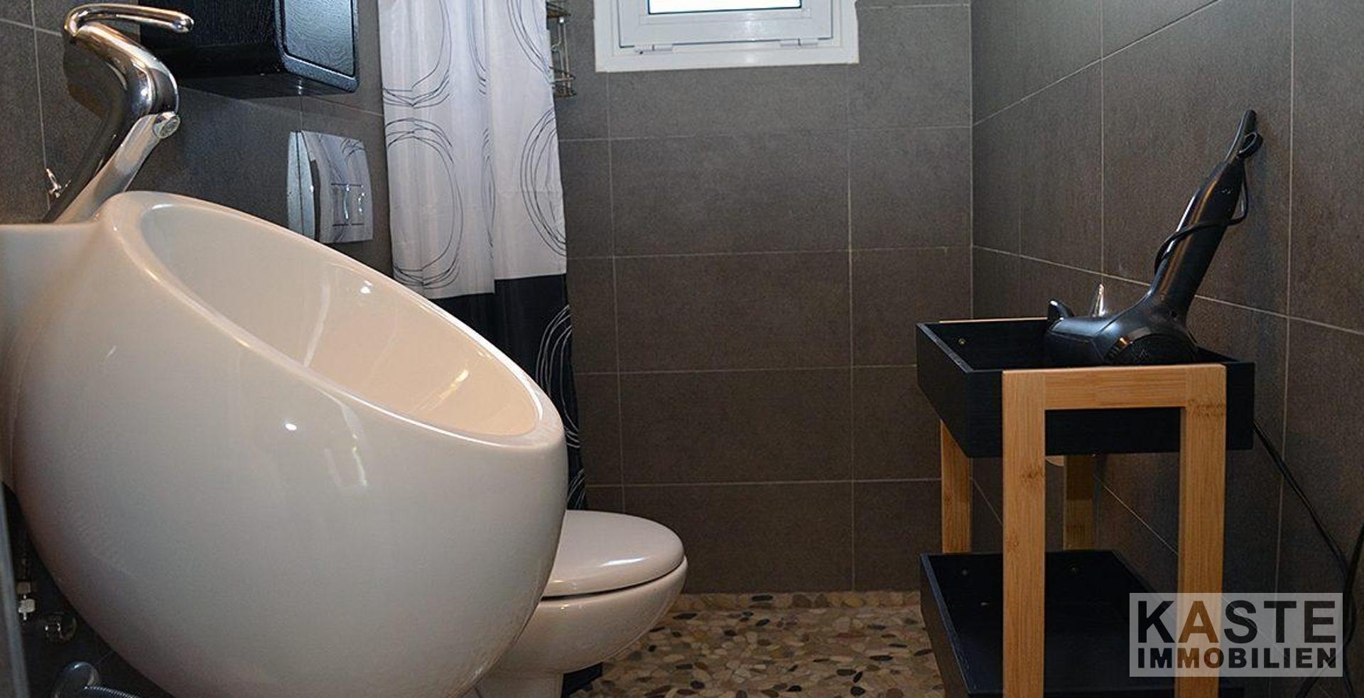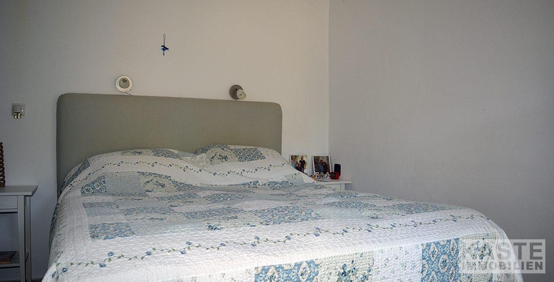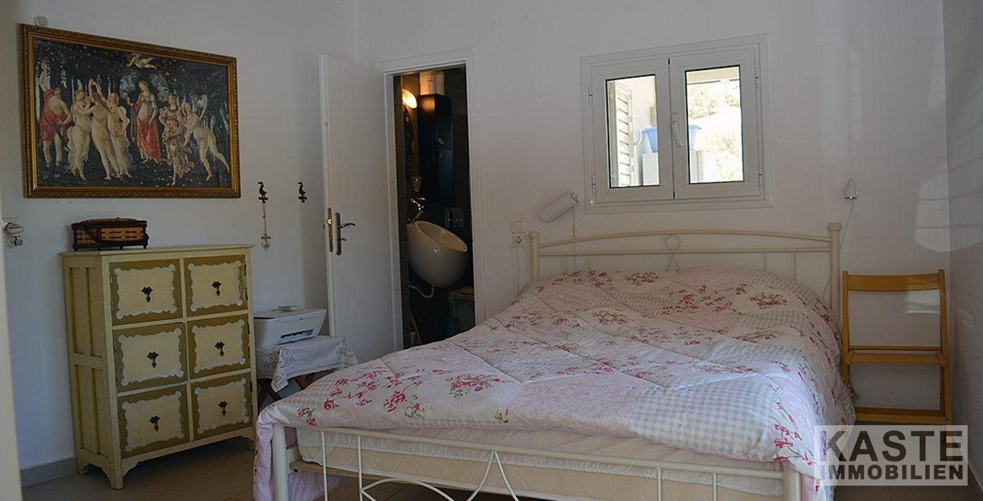 Das geräumige Gästezimmer erreicht man über eine separate Tür von der Terrasse aus. Dieser helle und luftige Raum ist mit Einbauschränken ausgestattet und verfügt über ein modernes, en-suite Badezimmer, das Gästen und Familienmitgliedern zusätzlichen Komfort bietet.