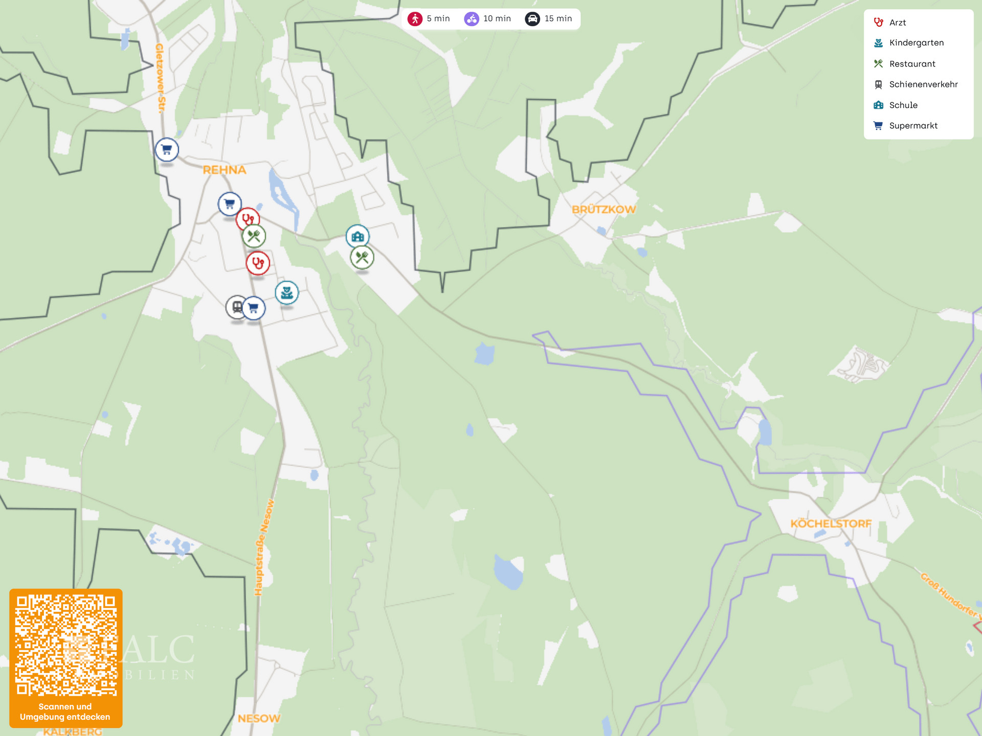 Die nächstgelegenen Städte wie Rehna, Gadebusch und Ratzeburg sind in kurzer Fahrzeit erreichbar und bieten eine gute Auswahl an Einkaufsmöglichkeiten, medizinischer Versorgung sowie Bildungs- und Betreuungseinrichtungen. Auch die Hansestadt Lübeck ist gut angebunden und erweitert das Angebot an Arbeitsplätzen, Kultur- und Freizeitmöglichkeiten erheblich. Damit verbindet Köchelsdorf eine ruhige Wohnlage im Grünen mit einer soliden regionalen Infrastruktur und guter Erreichbarkeit der umliegenden Zentren.