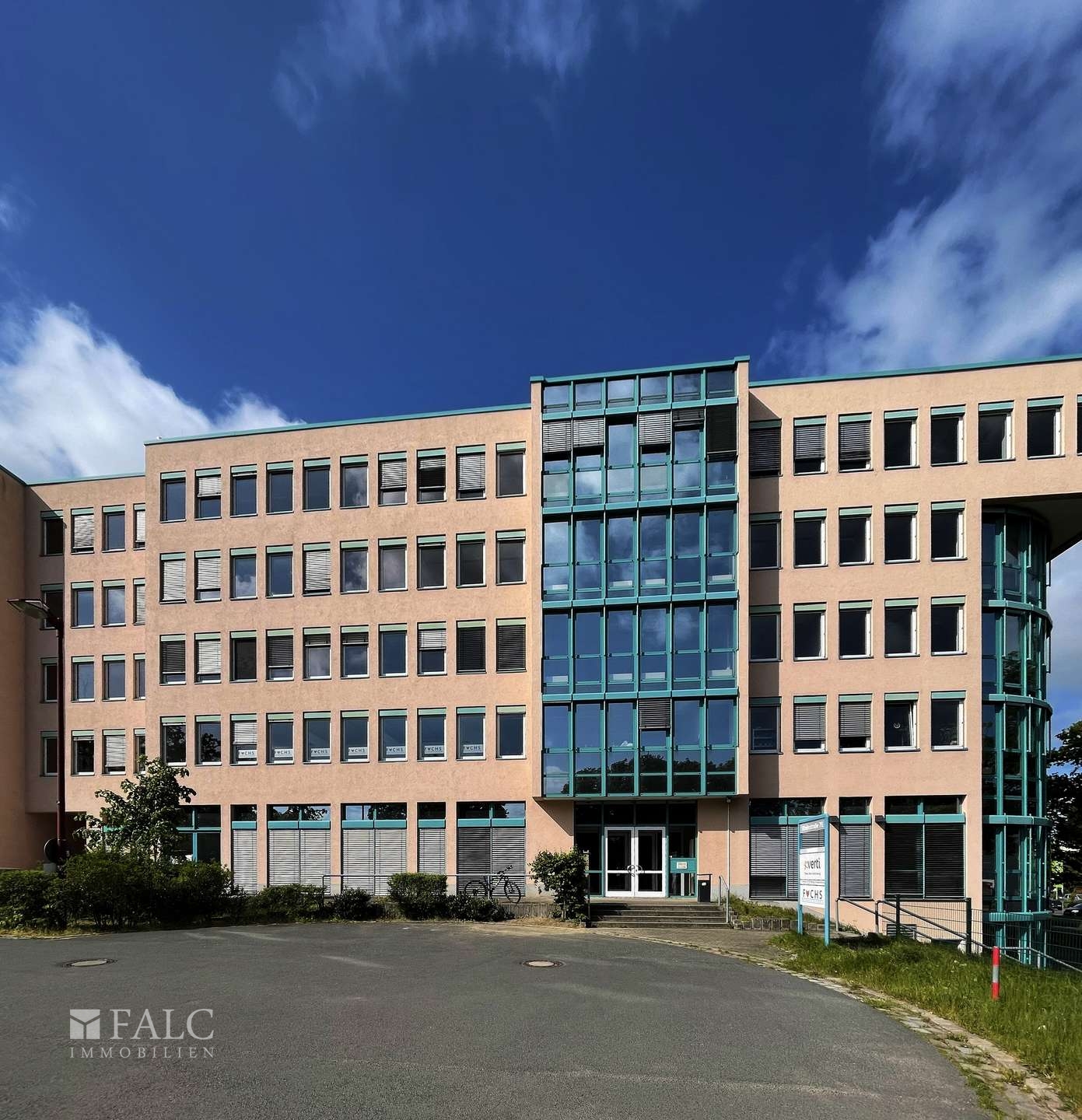 Das repräsentative Büroensemble mit über 19.000 m² Büro- und Gewerbeflächen befindet sich in einem etablierten Gewerbepark in unmittelbarer Nähe zur Berliner Stadtgrenze. Die Büroflächen sind komfortabel über sechs Treppenhäuser mit Aufzugsanlagen erschlossen und bieten eine effiziente sowie flexible Gebäudestruktur.