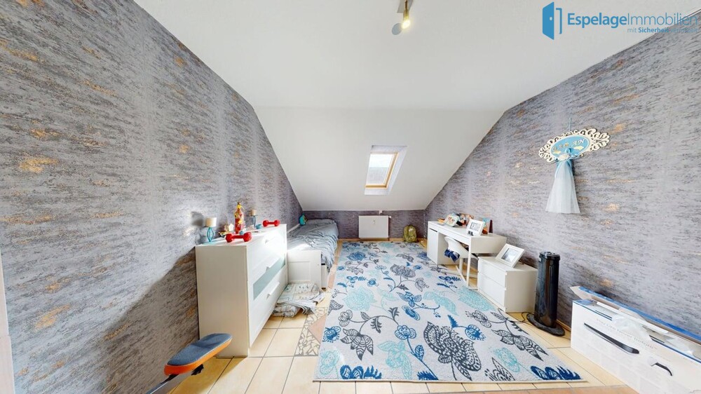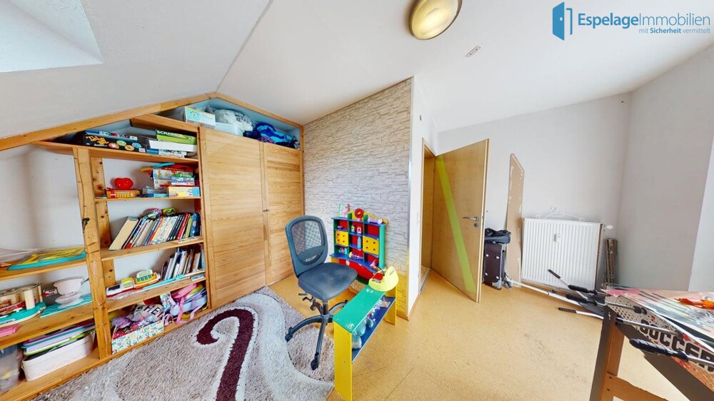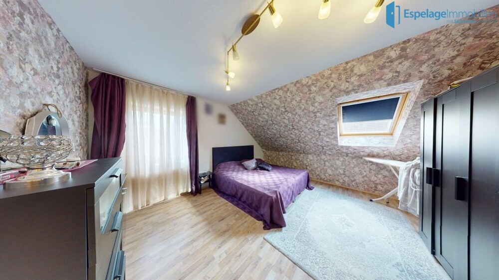 Im Obergeschoss befinden sich mehrere Schlafzimmer, wodurch eine klare Trennung zwischen Wohn- und Schlafbereich gegeben ist – ideal für Familien mit Kindern.