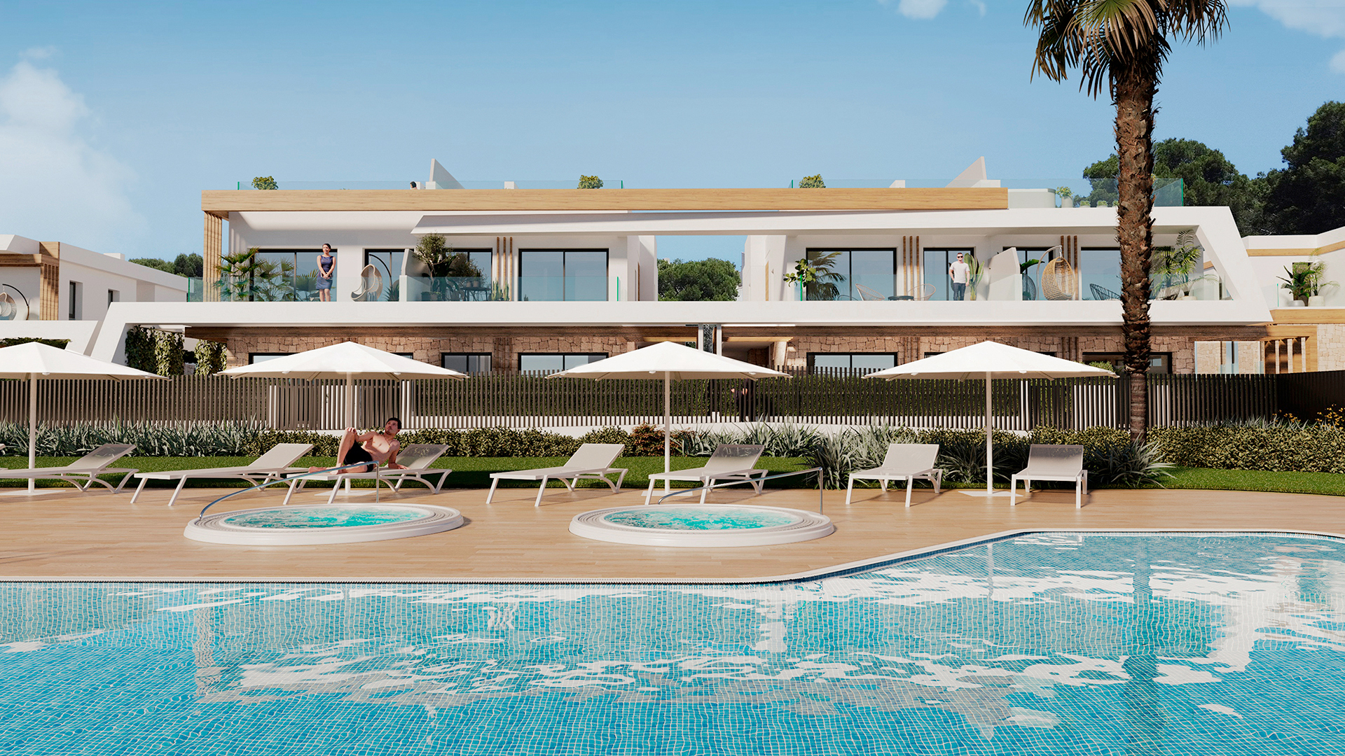 El lumo de Cala Ratjada bietet eine Vielfalt an Wohnmöglichkeiten, die sich Ihren individuellen Bedürfnissen anpassen. Von Doppelhaushälften mit 3 Schlafzimmern und 3 Bädern bis hin zu Doppelhaushälften mit 3 Schlafzimmern, 4 Bädern und einem Keller, sowie Apartments mit 2 Schlafzimmern und 2 Bädern – hier findet jeder sein Traumdomizil. Die Anlage zeichnet sich nicht nur durch exklusive Wohnräume aus, sondern bietet auch beeindruckende Gemeinschaftsbereiche mit Swimmingpool, Whirlpools und Ruhebereichen.
