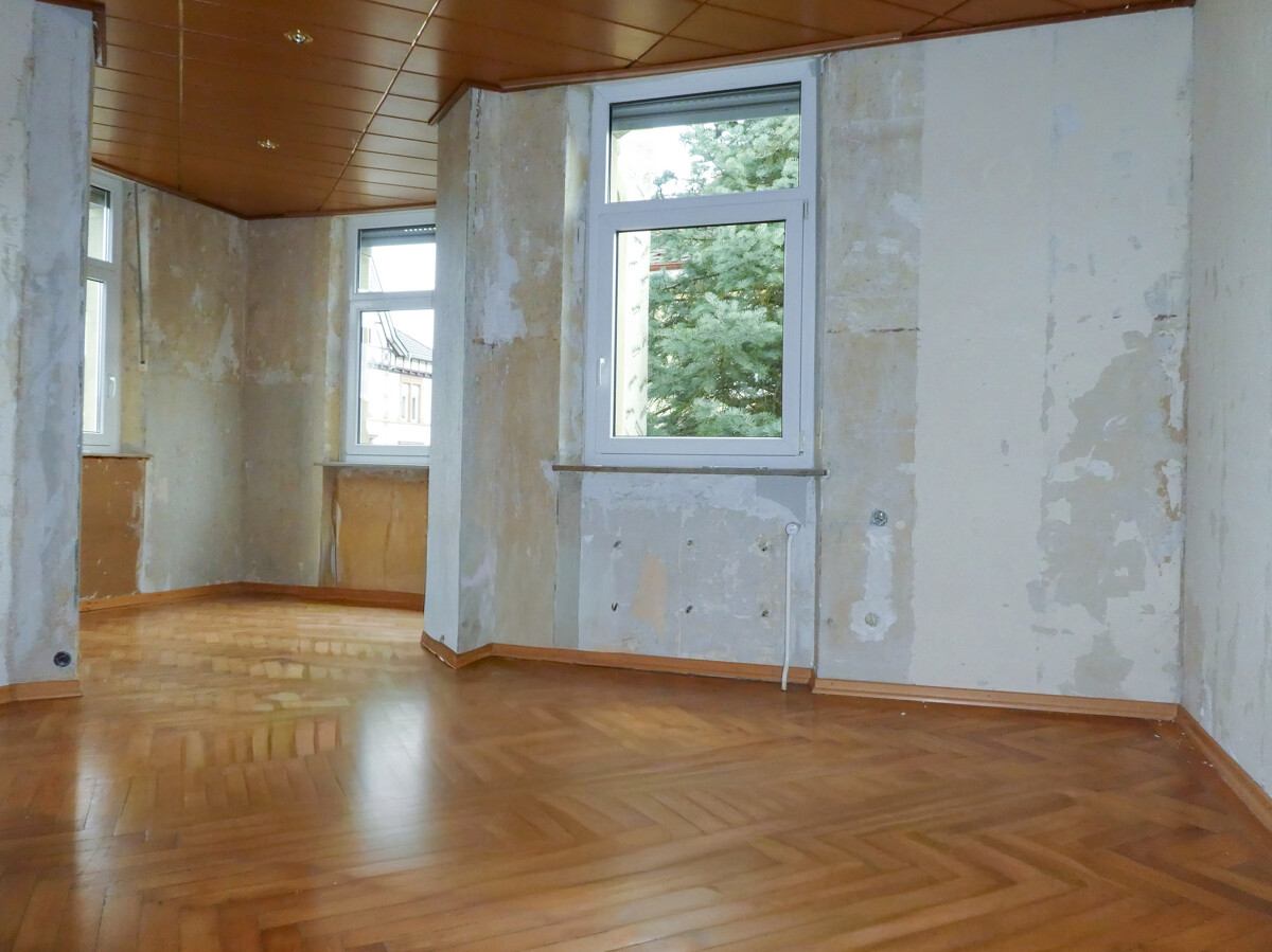 - Etagenwohnung mit 111 m² Wohnfläche - 3 Zimmer - Großzügige Terrasse mit ca. 37 m² - Parkettboden in den Wohnräumen - Fliesenboden in Küche und Bad - Begehbare Dusche im Badezimmer - Helle Räume durch große Fenster - Treppenhaus mit altem Holzgeländer - Ruhige Lage mit Hofeinfahrt - Garage mit Platz für ein Fahrzeug - Keller vorhanden