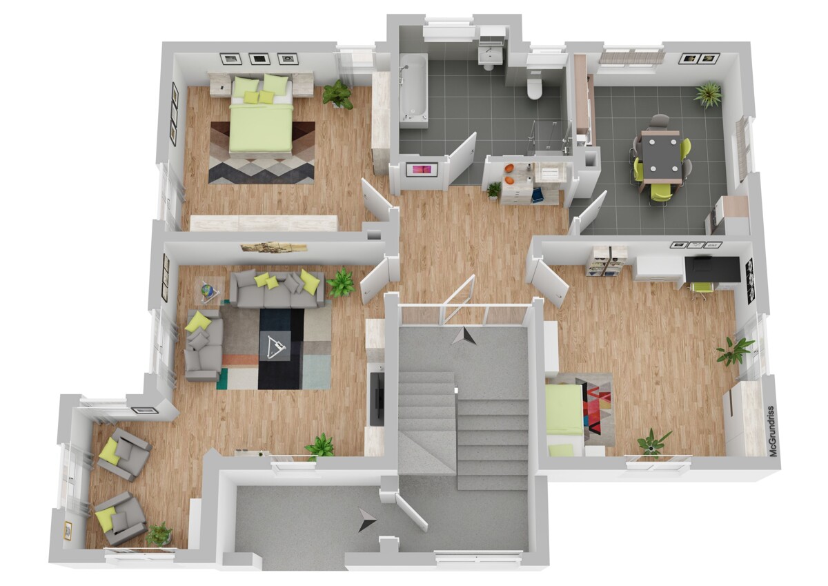 begehbare DuscheBadFlurFlurWohnzimmermit ErkerWohnzimmerSchlafzimmer zur TerrasseKinderzimmerKücheKücheTerrasseGarageTreppenhausHofeinfahrtHausansichtHausansichtGrundrissBad