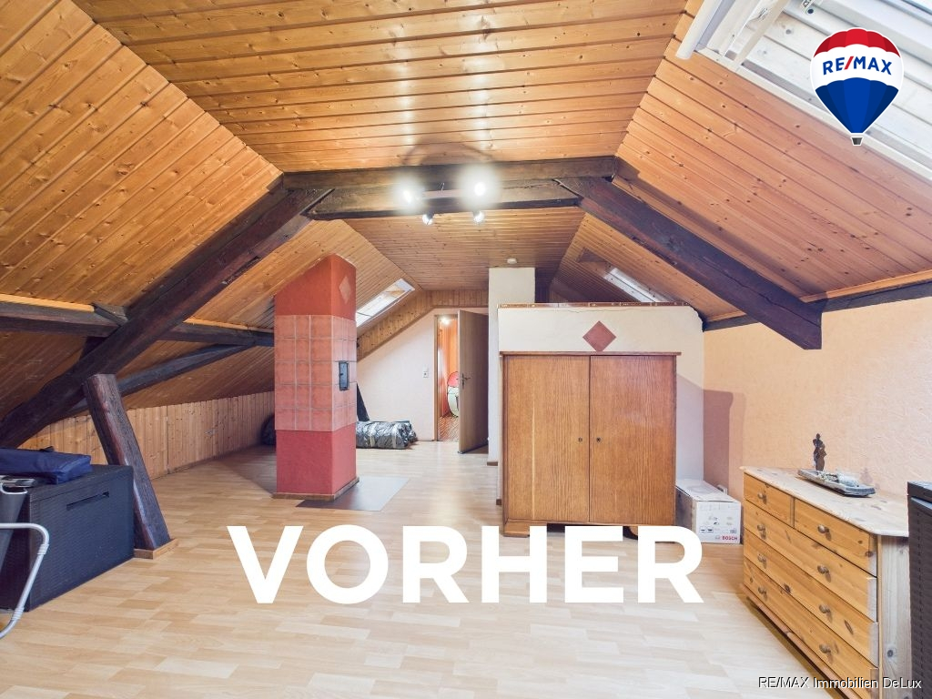 Ausgebautes Dachgeschoss – viel zusätzlicher Platz: Das vollständig ausgebaute Dachgeschoss bietet drei weitere Räume und sogar eine ehemalige Räucherkammer, die heute als praktischer Lagerraum dient. Ein echtes Plus an Flexibilität und Nutzungsspielraum.