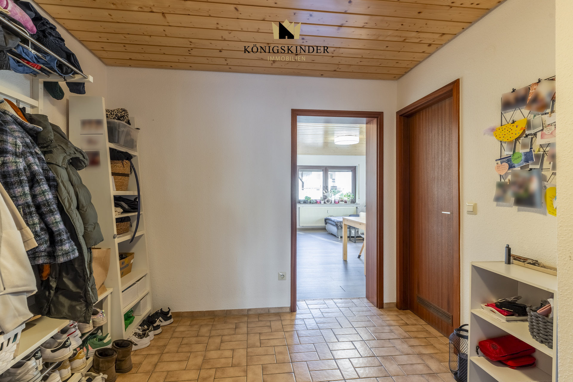 Ein praktischer Flur verbindet alle Räume miteinander und bietet zusätzliche Stellmöglichkeiten für eine Garderobe oder weitere Stauraumlösungen.