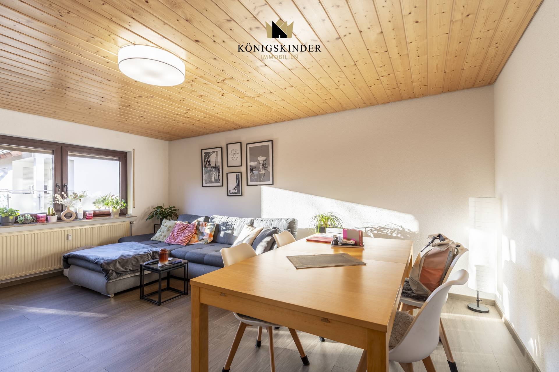 Der großzügige Wohn- und Essbereich bildet das Herzstück der Wohnung. Große Fensterflächen sorgen für viel Tageslicht und schaffen eine freundliche und einladende Atmosphäre. Von hier aus gelangen Sie direkt auf die Terrasse, die zusätzlichen Raum im Freien bietet und sich ideal zum Entspannen oder für eine kleine Auszeit im Alltag eignet.