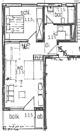 Wohnzimmer Schlafzimmer Badezimmer mit Wanne Küche