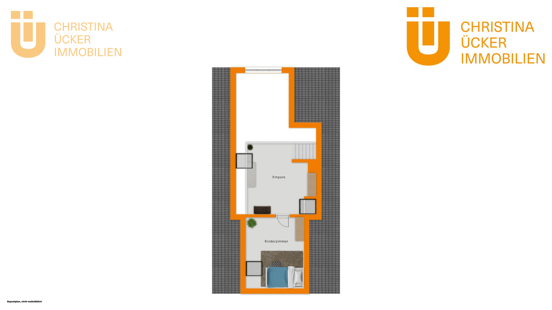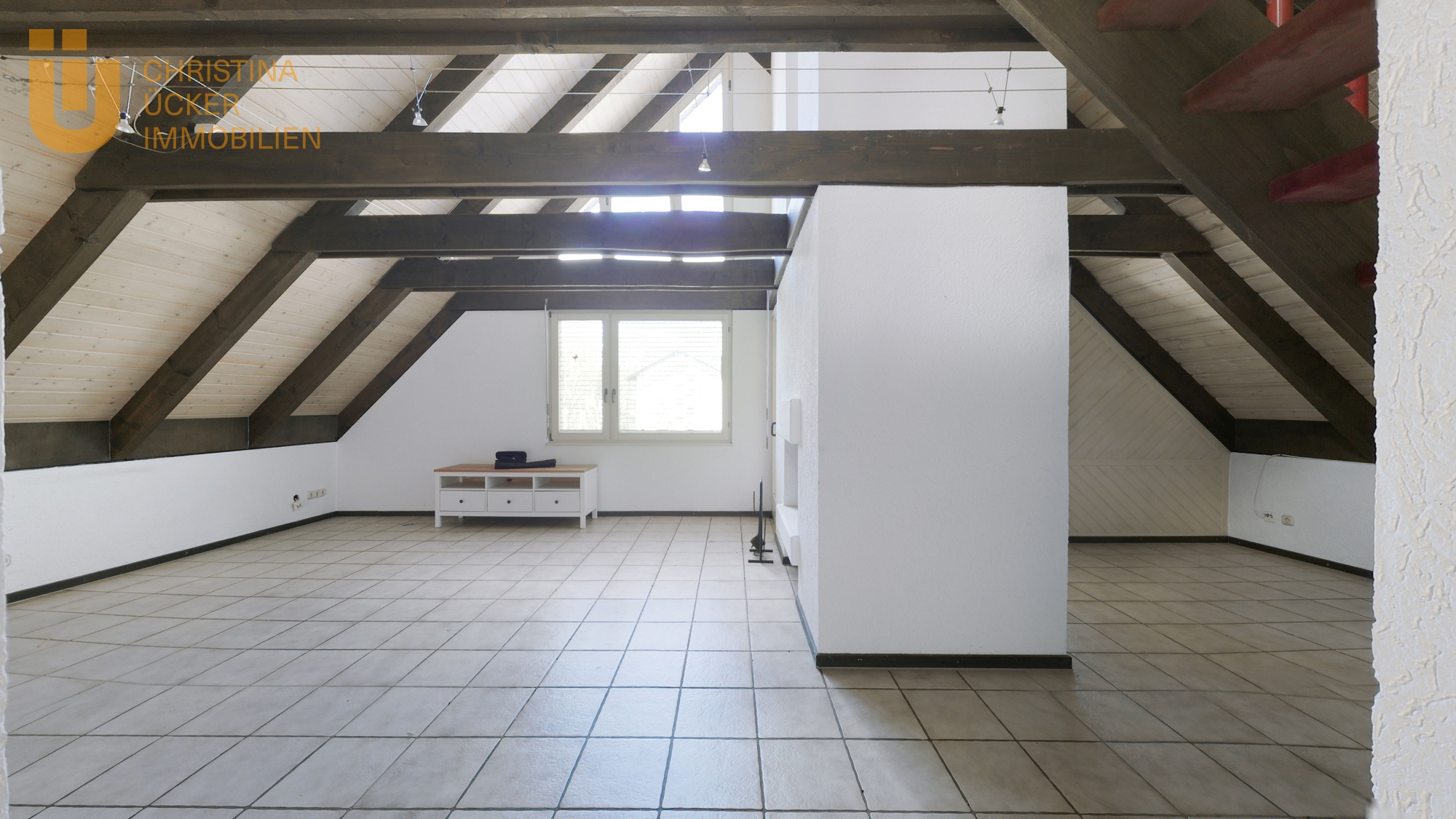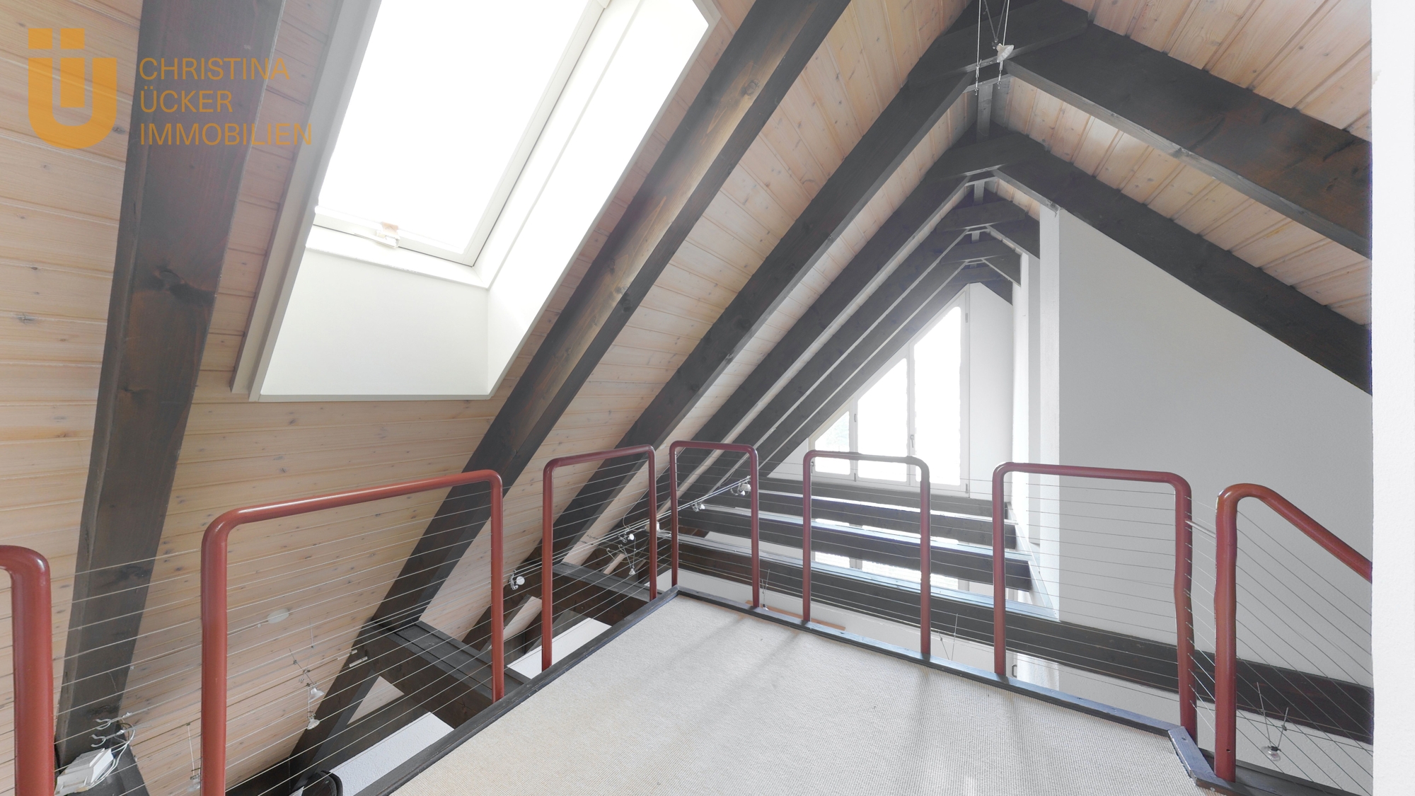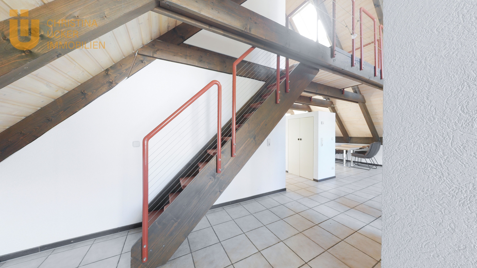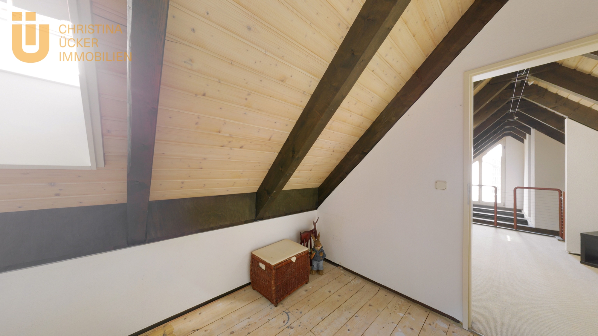 Über eine Treppe erreicht man das ausgebaute DG. Der offene Bereich am Ende der Treppe hat einen Galerie-Charakter und bietet einen schönen Blick hinunter ins Wohnzimmer. Hier lässt sich ein kreativer Arbeitsbereich oder eine kleine Lounge einrichten. Ein weiteres separates Zimmer unter dem Dach eignet sich perfekt als Kinderzimmer, Gästezimmer oder Homeoffice.