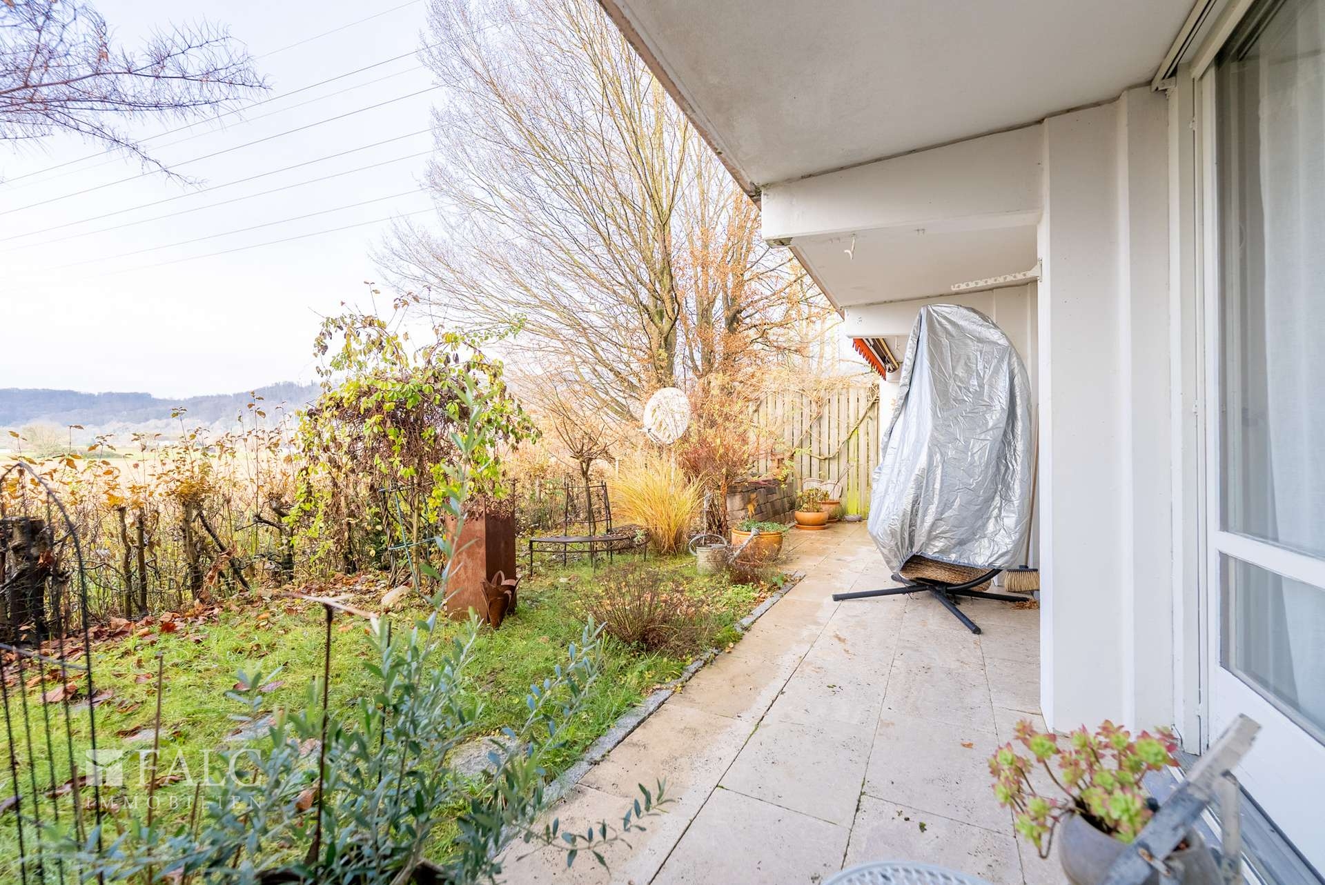 Die Wohnung überzeugt durch eine praktische Raumaufteilung, die sowohl Singles, Paare als auch kleine Familien anspricht. Der Wohnbereich bietet direkten Zugang zur Loggia sowie zur angrenzenden Gartenfläche. Große Fensterflächen befinden sich vor allem in Richtung Terrasse/Loggia, wodurch der Wohnbereich angenehm hell wirkt. Die restlichen Räume sind funktional gestaltet und verfügen über normale Fenstergrößen.