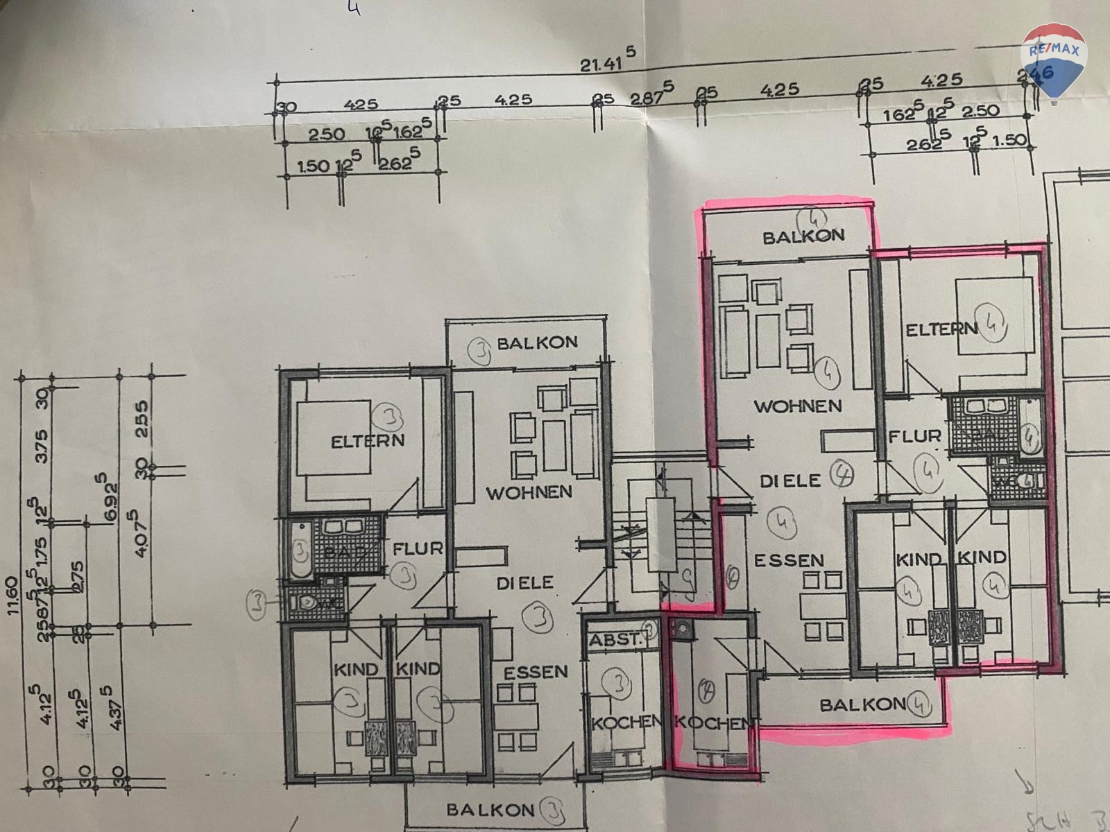 Wohnzimmer mit Ost-BalkonOst-BalkonWest-BalkonKücheBadezimmerBad-WCBad-WCGrundriss Lageplan Flst. 7654 Energeausweis Energieausweis Esszimmer