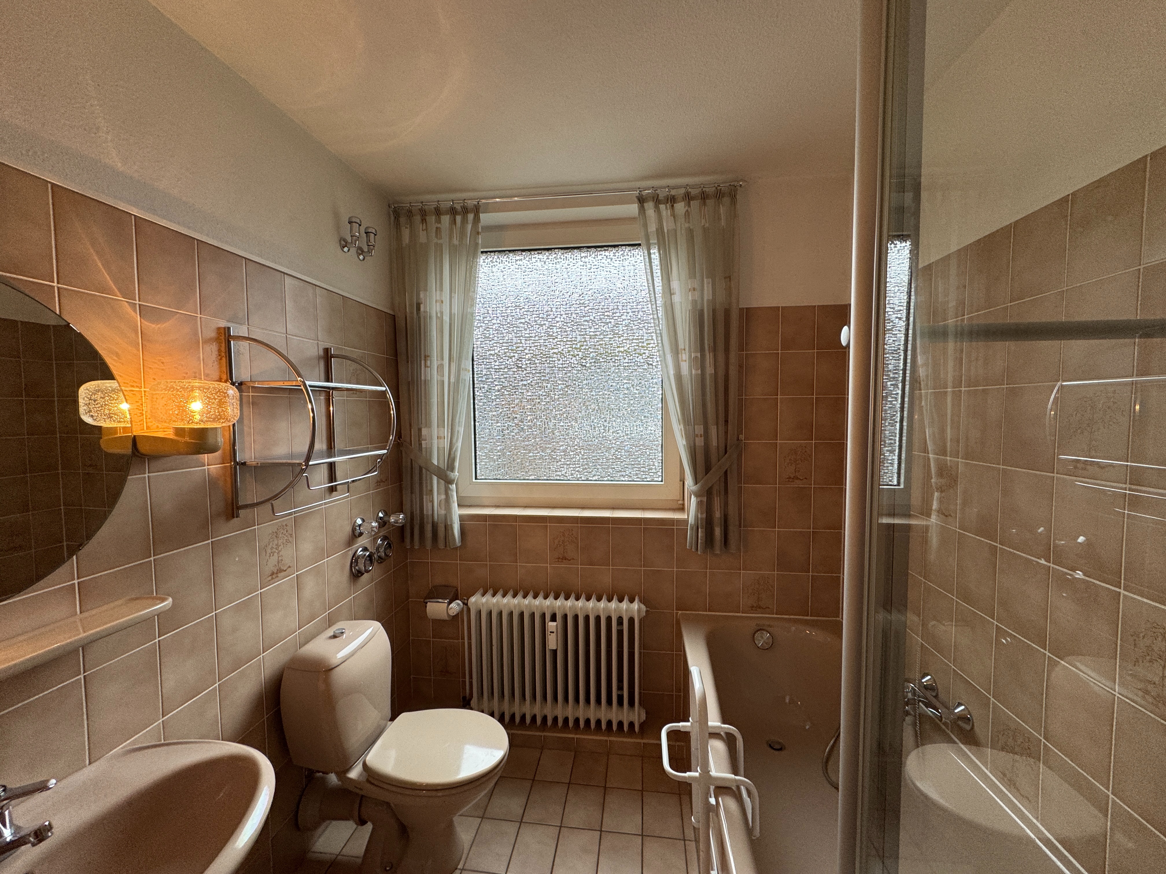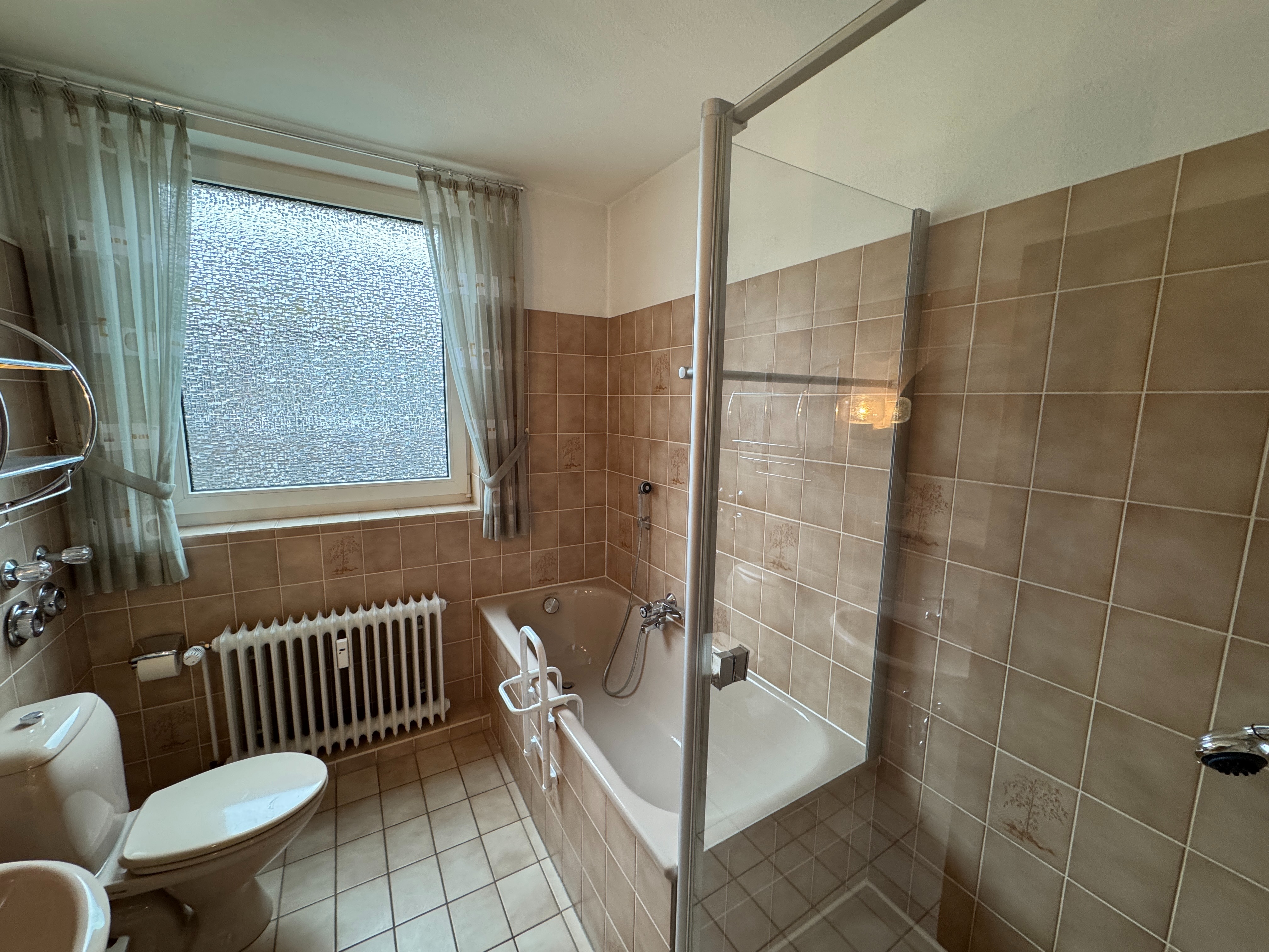 Im Zentrum des Wohnkomforts steht eine separate Küche mit Einbauküche, die optimale Arbeitsflächen und Stauraum bietet. Das gepflegte Badezimmer präsentiert sich hell und freundlich dank Fenster und ist sowohl mit einer Badewanne als auch einer Dusche ausgestattet – ideal für individuelle Wellness-Momente.