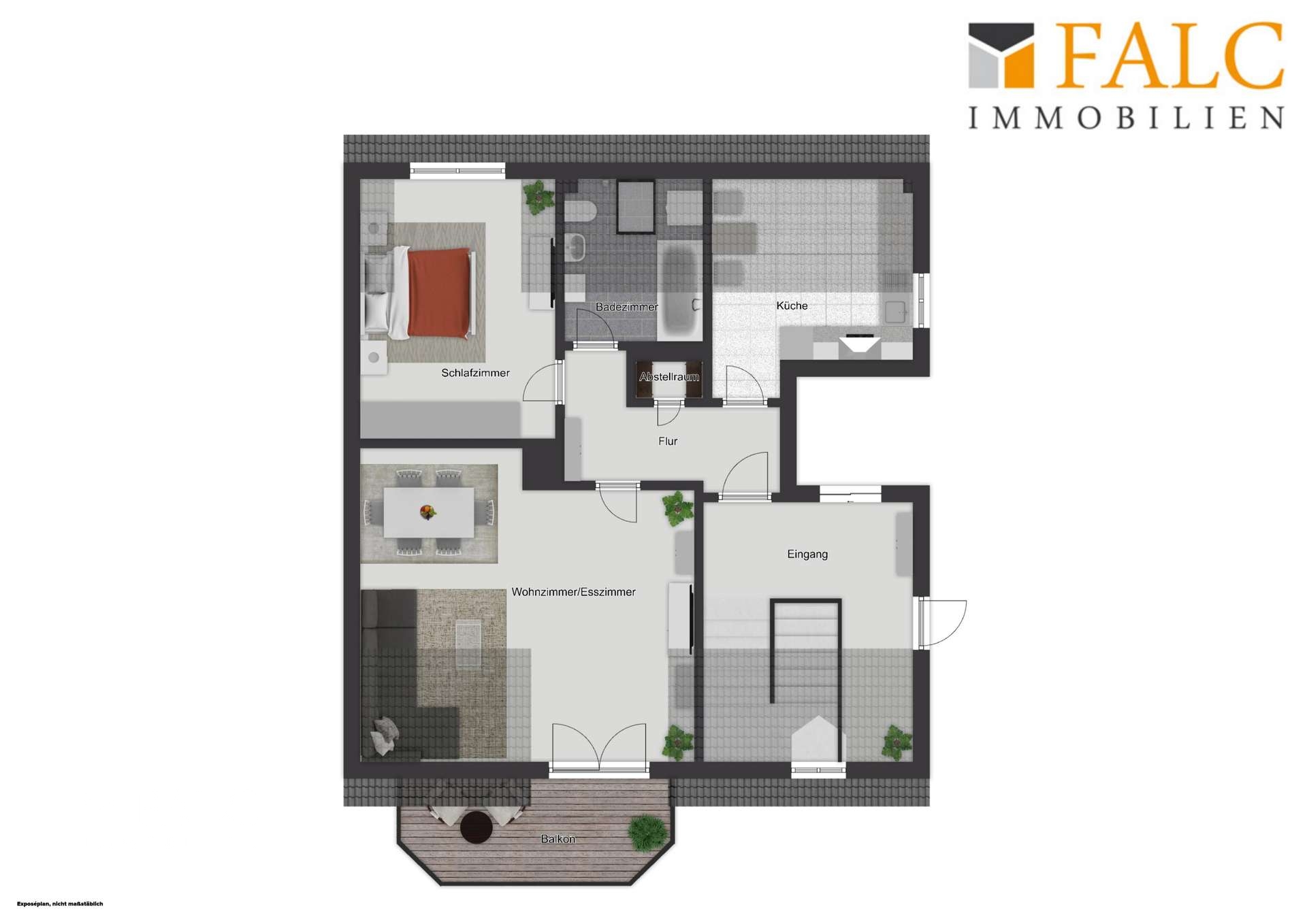 Eine Besichtigung sagt mehr als jede Beschreibung. Bei Interesse zögern Sie nicht und vereinbaren Sie einen unverbindlichen Termin. Wir bieten nicht nur eine kostenlose Hotline, sondern auch einen Service am Wochenende an. Bei Interesse geben Sie bitte immer Ihre vollständigen Kontaktdaten an. Die Objektbeschreibung beruht ganz oder zum Teil auf Angaben des Eigentümers. Für die Richtigkeit oder Vollständigkeit übernehmen wir keine Gewähr. Sie haben auf Anhieb nichts gefunden oder suchen Sie etwas ganz bestimmtes? Teilen Sie uns einfach mit, was Sie suchen und wonach wir für Sie die Augen offenhalten dürfen. Profitieren Sie von den Vorteilen einer professionellen Maklersuche. Der Suchauftrag ist unverbindlich. Auf unserer Homepage www.falcimmo.de unter der Rubrik Immobiliensuche halten wir für Sie zum einen den Onlinesuchauftrag bereit, haben aber auch viele andere nützliche Informationen für Kaufinteressenten und Eigentümer. Die in diesem Exposé enthaltenen Fotos können ganz oder teilweise unter Einsatz digitaler Bildbearbeitung und/oder künstlicher Intelligenz erstellt oder optimiert worden sein. Sie dienen ausschließlich der Veranschaulichung. Verbindlich sind nur die tatsächlichen Gegebenheiten bei einer Besichtigung vor Ort.